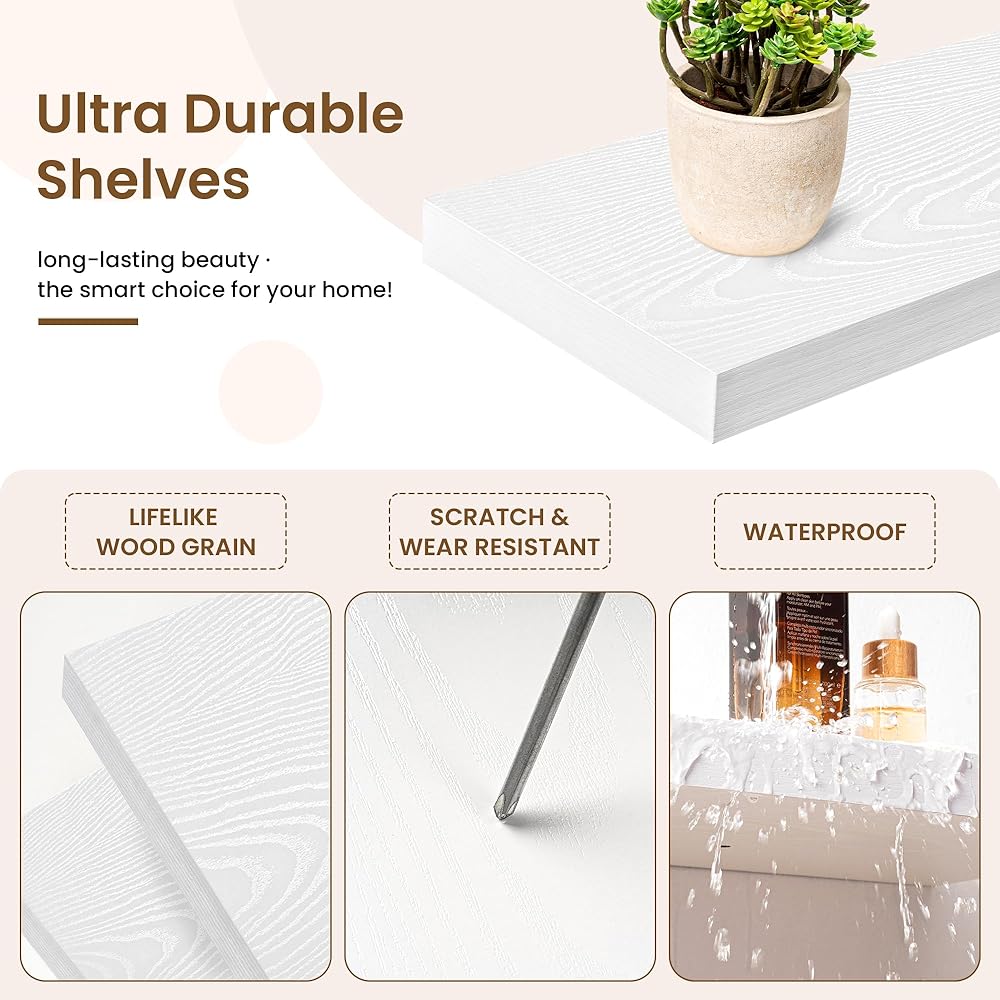 [متوافق مع أي نمط]: سواء كان الطراز حديثًا أو عتيقًا، فإن هذه الأرفف العائمة الريفية تتكيف بسلاسة. متوفرة بألوان وأحجام متنوعة، وهي تلبي جميع احتياجات ديكور المنزل. ويضمن التصميم المعزز والواسع للغاية مع قدرة تحمل استثنائية عدم تقييد الإبداع، وتحويل المساحة الخاصة بك إلى ملاذ مثالي