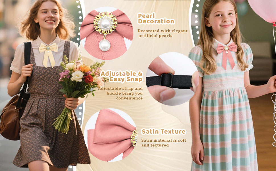 تصميم أنيق: تتميز ربطة العنق هذه ذات اللون الصلب للسيدات بشكل عصري، ومزينة باللؤلؤ الصناعي؛ التصميم الكلاسيكي لربطة العنق للفتيات يكمل ملابسك اليومية بسهولة، مما يضيف الأناقة والرقي لمظهرك
