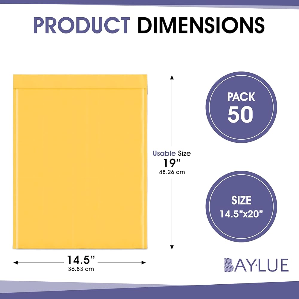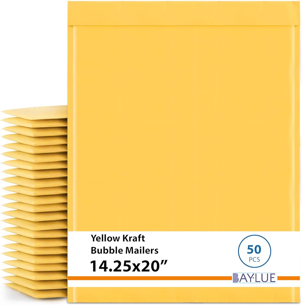 14.25x20, Kraft Bubble Mailers, #7, Extra Large,Padded Envelopes, Bubble Envelopes, Packaging, Shipping Bags for Small Business, With Self Seal Tape, Usable size 14.25x19, 50 Pack