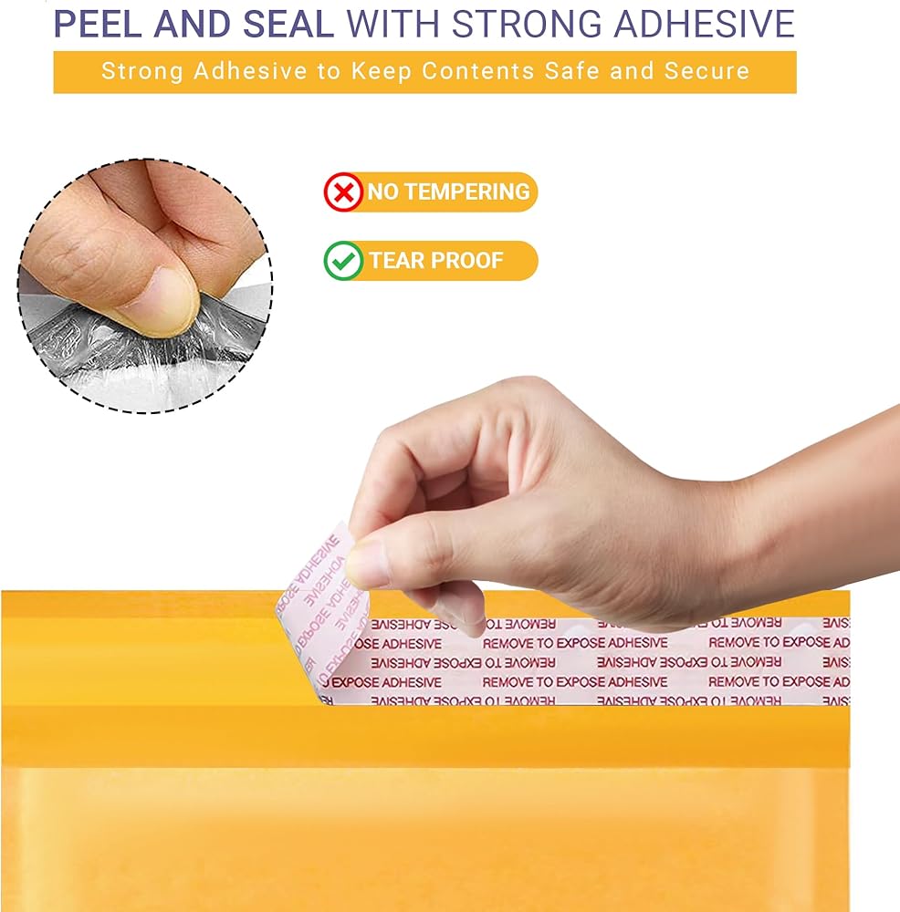 Secure Self-Sealing: Experience hassle-free packaging with our kraft bubble mailers featuring a reliable self-sealing adhesive tape. This convenient and secure sealing mechanism saves time and effort, making it ideal for safely packing and shipping a wide range of products.