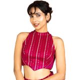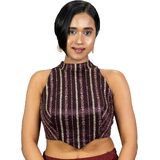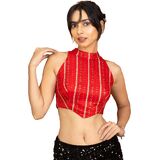 بلوزة ساري للسيدات من FIGURE'S DESIGNER بياقة صينية مزينة بالترتر ورقبة رسن بدون أكمام ومطرزة جاهزة E25 in Kuwait