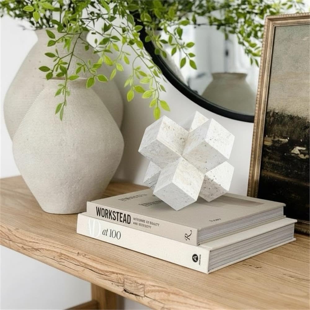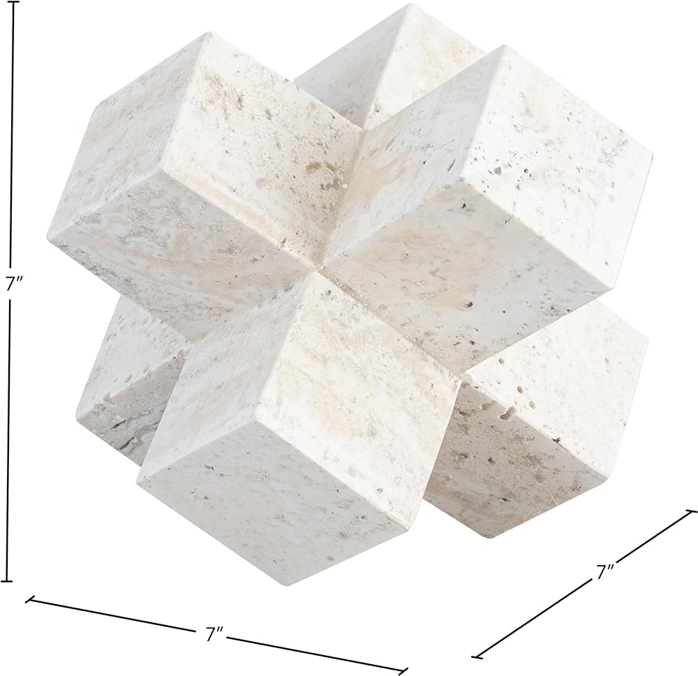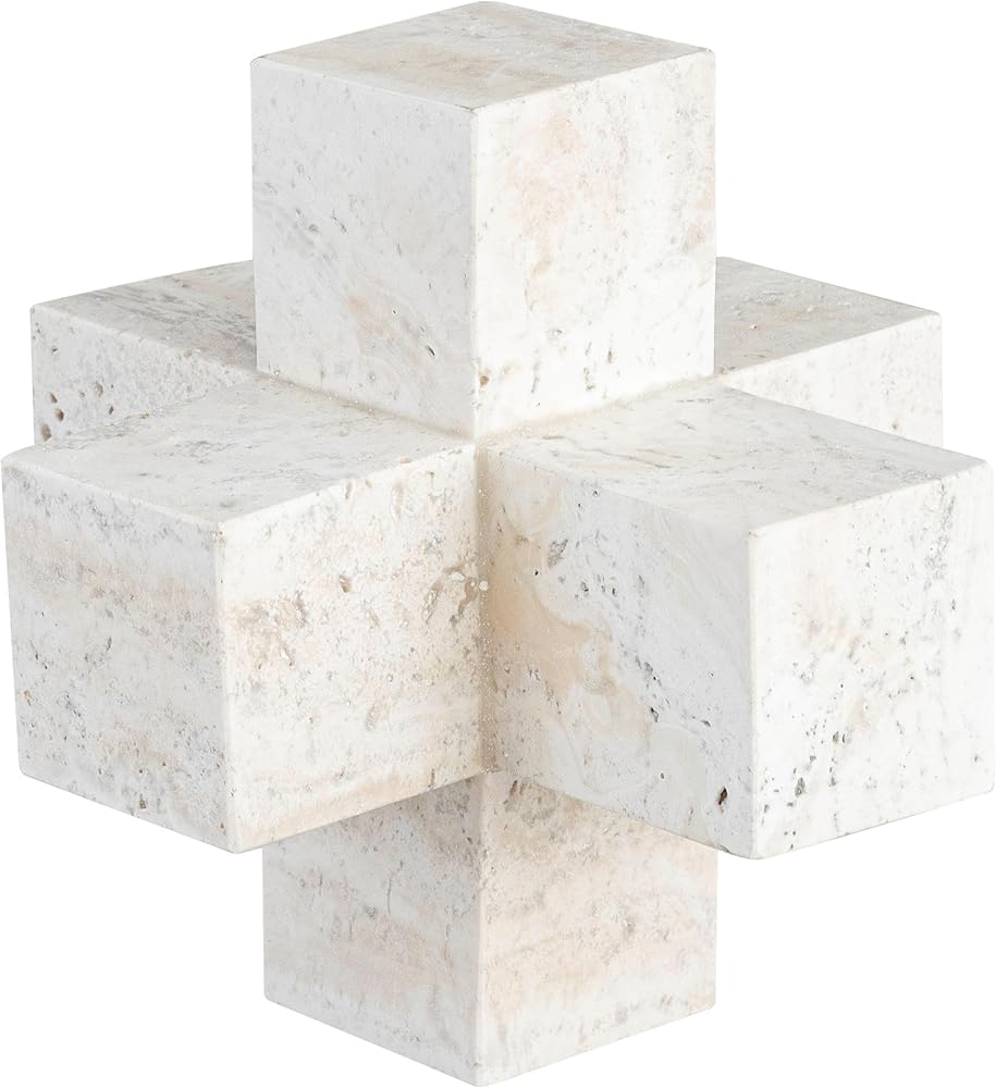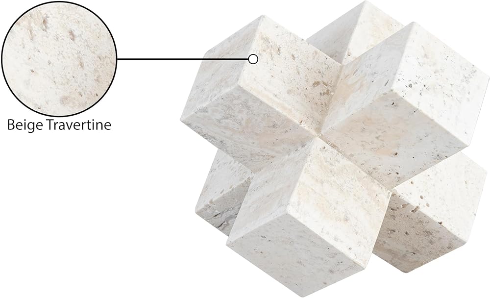 Unexpected and sculptural, the Jack beige travertine decorative object brings playful geometry to any space. Crafted from genuine stone, each piece showcases natural veining and one-of-a-kind character. Whether styled solo or grouped with other tabletop accents, it's a conversation piece that balances artistry with elegance.