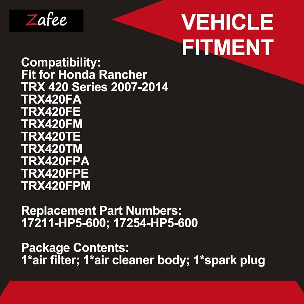 • Package Contents: 1*TRX420 air filter; 1*Air cleaner body Rancher 420; 1*BKR5E spark plug