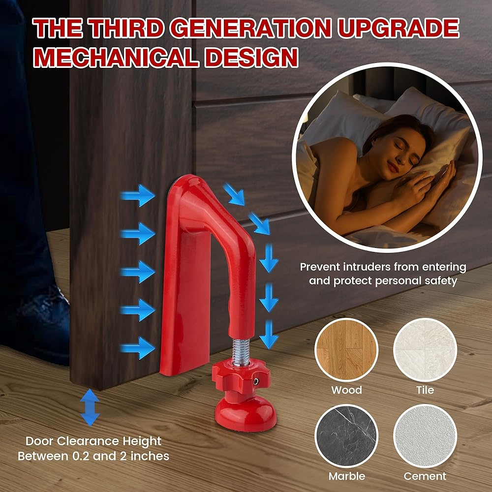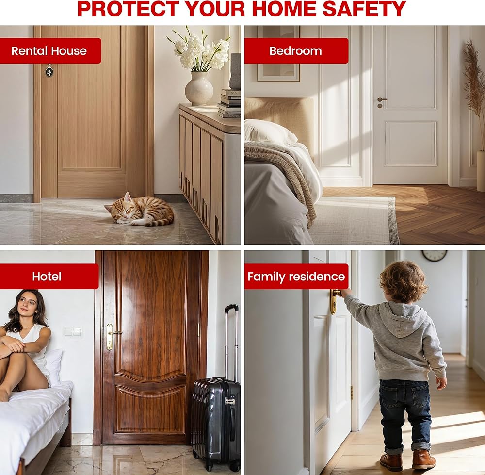 • 【توافق واسع واستخدام متعدد الاستخدامات】يناسب الأبواب المتأرجحة القياسية وأبواب الفنادق وأبواب الشقق. يعمل بسلاسة على أسطح الأرضيات المختلفة بما في ذلك السجاد والبلاط والخشب، وهو مثالي للمعيشة المنفردة ورحلات العمل والإقامات في الفنادق وأمن المنزل.