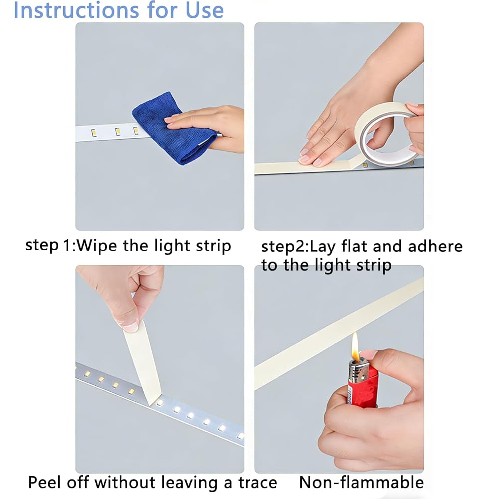 Premium Material: Crafted from high-quality fiberglass, this LED diffusion tape can be cut to size as needed. It adheres securely and peels off cleanly without leaving residue or damaging furniture surfaces. Its heat-resistant, waterproof, and flame-retardant properties ensure reliable, worry-free use.