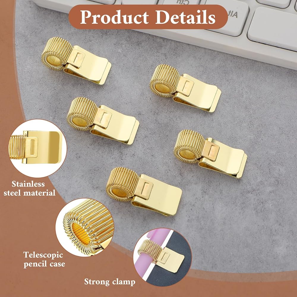 5pcs Gold Adjustable Spring Clip Pen Clip