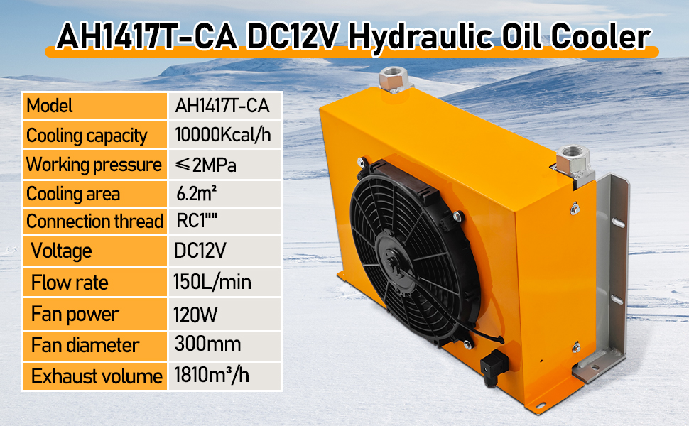 AH1417T-CA DC12V 150L/دقيقة مروحة مبرد الزيت الهيدروليكي 120 واط الزيت الهيدروليكي المبرد مبرد الهواء تبديد الحرارة استبدال # AH1417T