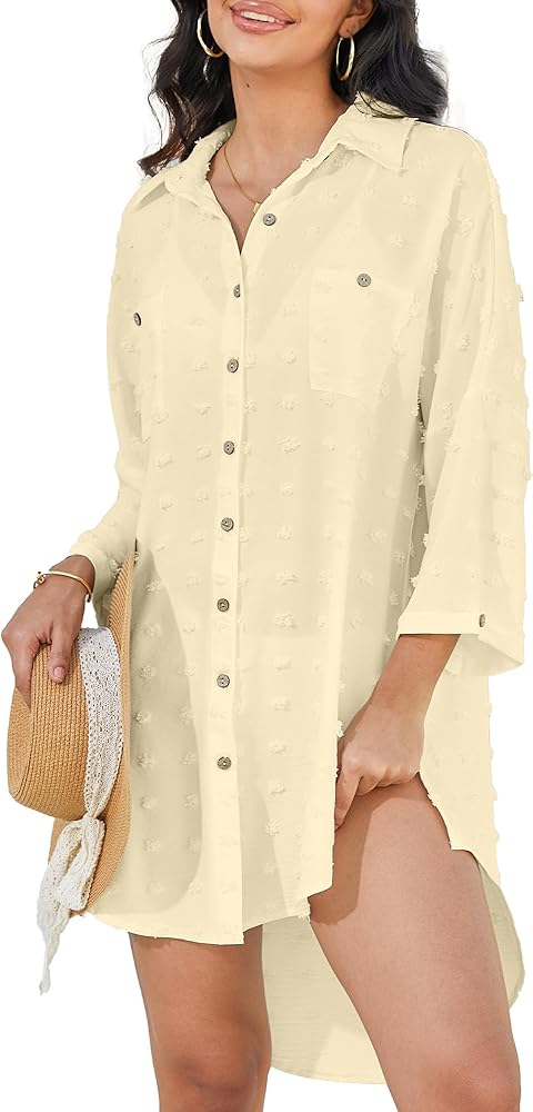 ملابس سباحة للسيدات من Breezy Lane، قميص سباحة بغطاء للشاطئ بأزرار سويسرية منقط in Kuwait