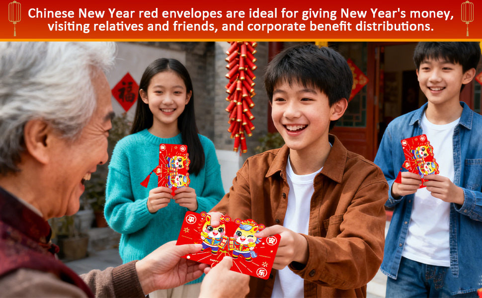 2026 ترقية الظرف الأحمر للعام القمري الجديد: يبلغ حجم غطاء مظاريف النقود التقليدية لدينا حوالي 3.747.09 بوصة (عرض*طول)، ويبلغ الطول الإجمالي 47.24 بوصة. إنه يكسر الشكل الفردي للأظرف الحمراء التقليدية ويخلق حاملًا جديدًا لهدية العام الجديد. إنه عنصر ملفت للنظر لإعطاء المال المحظوظ خلال عيد الربيع وتبادل التهاني مع الأقارب والأصدقاء