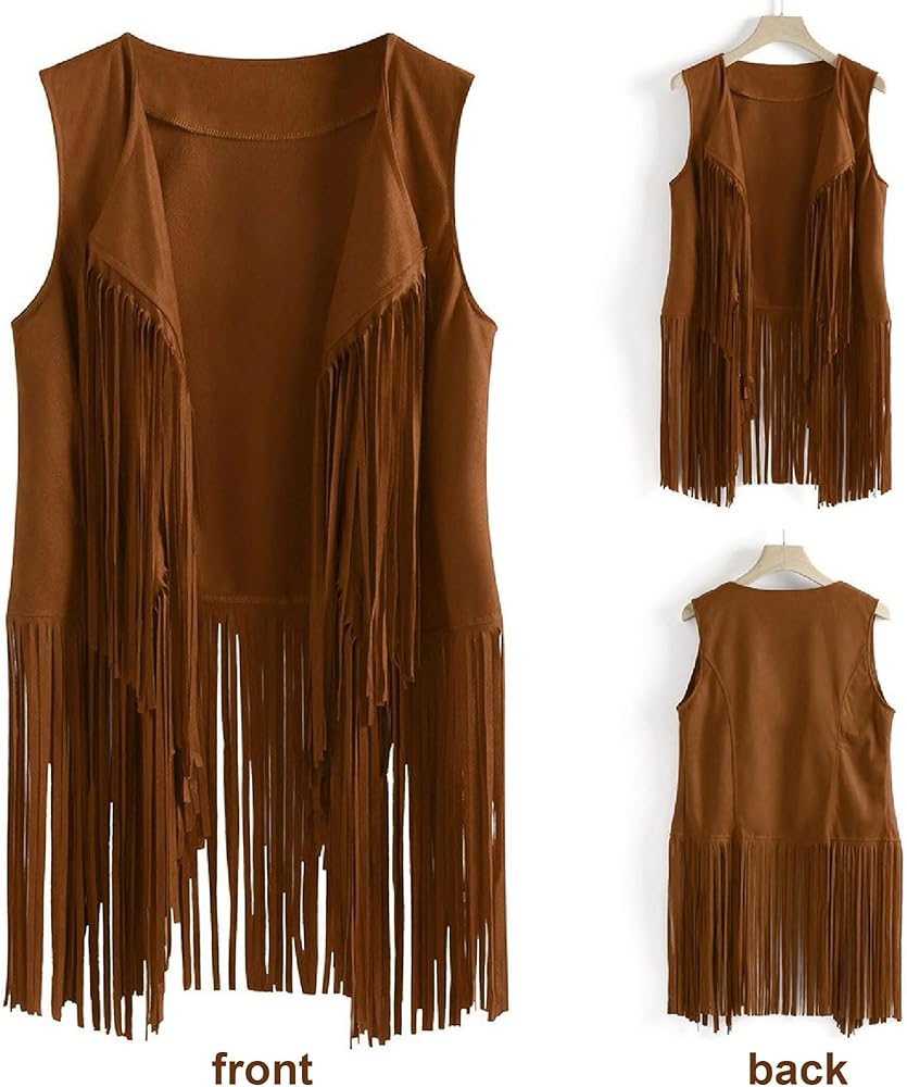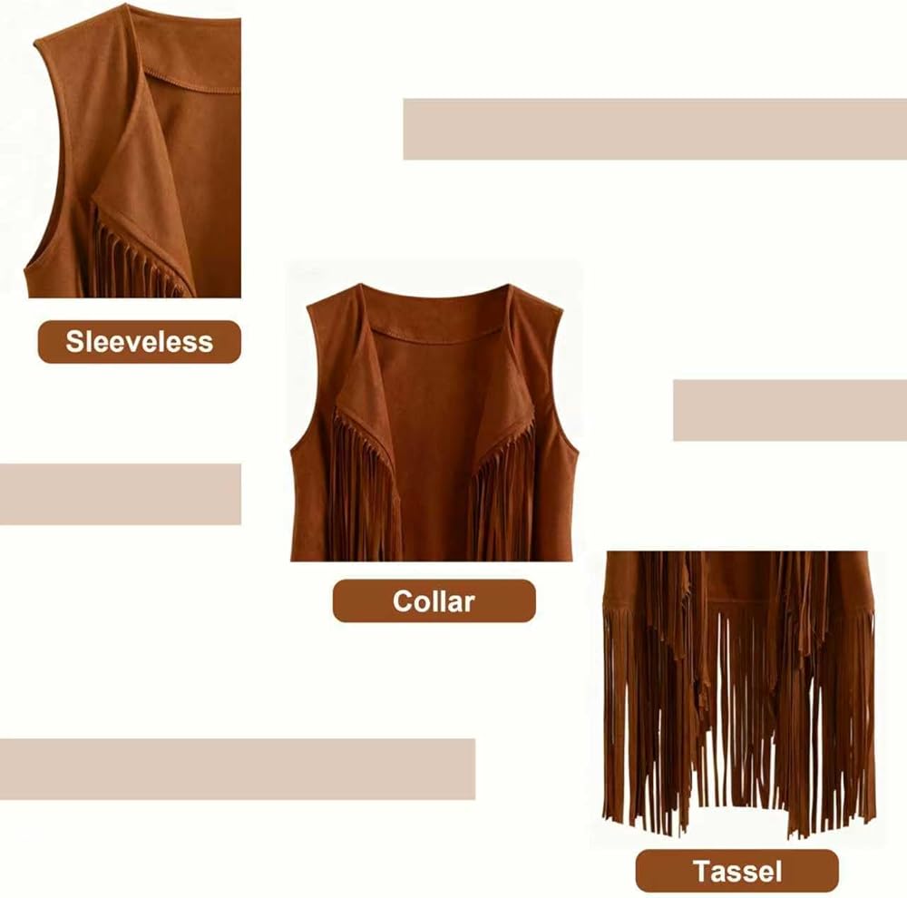• سترة ذات شراشيب بنية: سترة من الجلد السويدي الصناعي الناعم مع تصميم كلاسيكي بشراشيب. خفيفة ومريحة ومليئة بنمط رعاة البقر الغربي للعب اليومي.