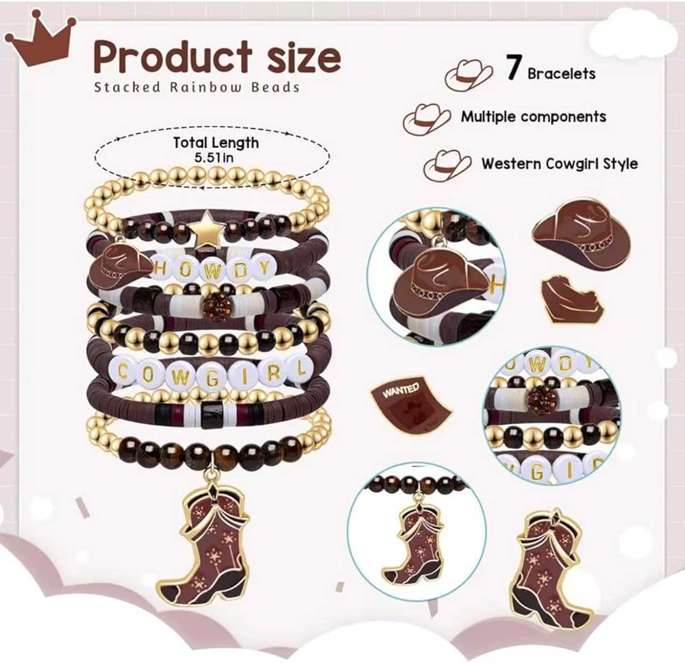 • إكسسوارات راعية البقر الغربية: أساور مطرزة بطبقات مع حليات رعاة البقر ومنديل أحمر بطباعة بيزلي تكمل مظهر راعية البقر الغربية.