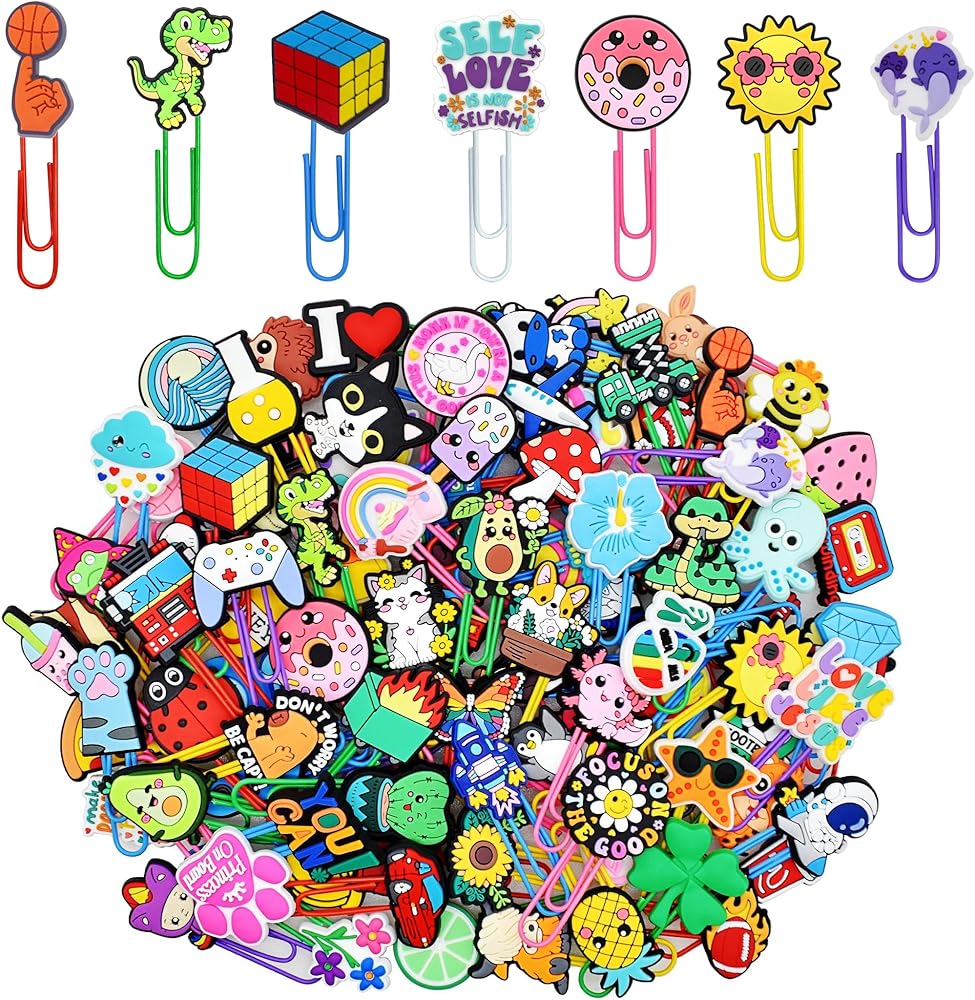 The paperclip is made of Thicker metal quality,strong, durable, and rust-resistant And the bookmark charm made of Non-Toxic PVC material.Touch Soft,Good Size and Lightweigt