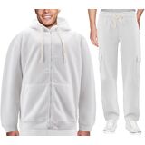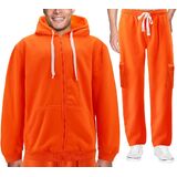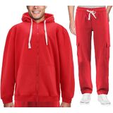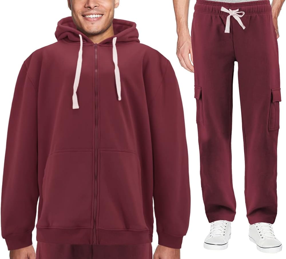 Men's classic fleece 2 piece set features elastic drawstring sweatpants with cargo flap pockets on the side and rear. The straight leg cut comes to a wide leg opening, which can be easily adjusted to a jogger style ribbed leg opening with an inner adjustable tab. The zip up hoodie sweater features a drawstring hood and classic front kangaroo style pocket. Choose between any of the wide variety of color options available.
