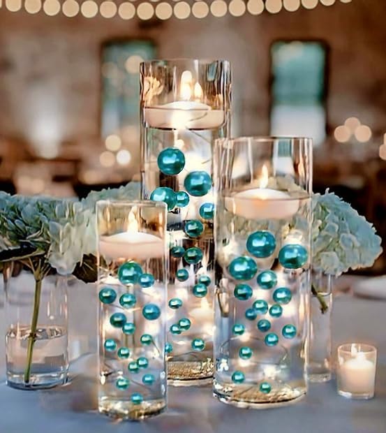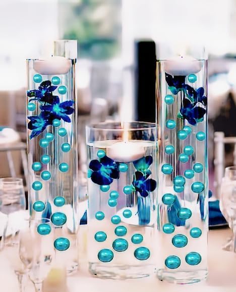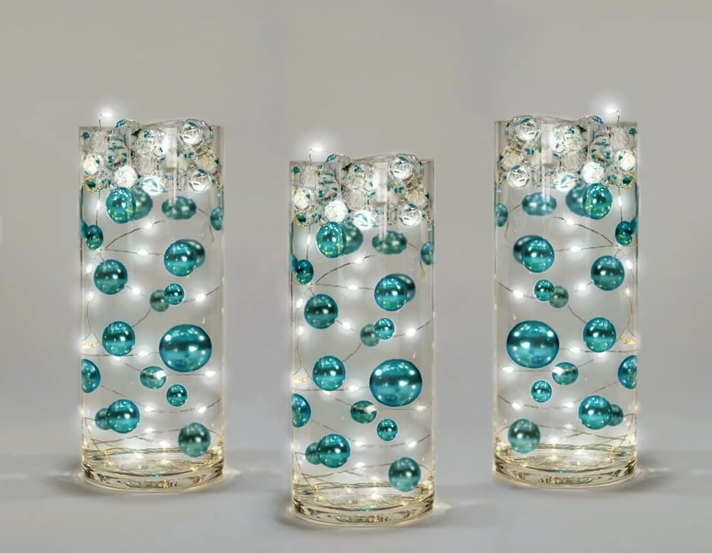 100 لؤلؤة زرقاء فيروزية عائمة مع أحجار كريمة متلألئة متطابقة - أحجام كبيرة - تملأ 2 جالون من المواد الهلامية الشفافة للحصول على تأثير عائم - مع أكياس تحضير المواد الهلامية العائمة المقاسة للحصول على أفضل النتائج!
