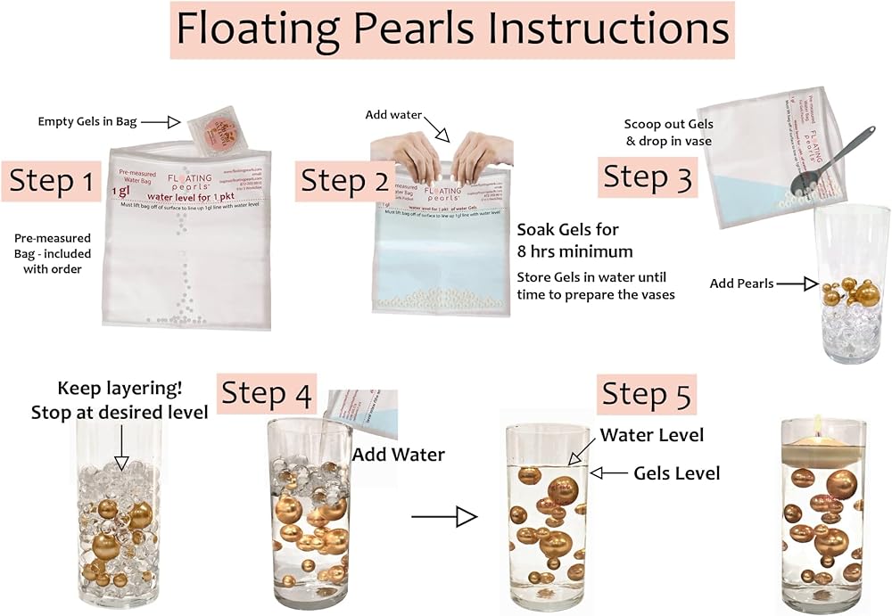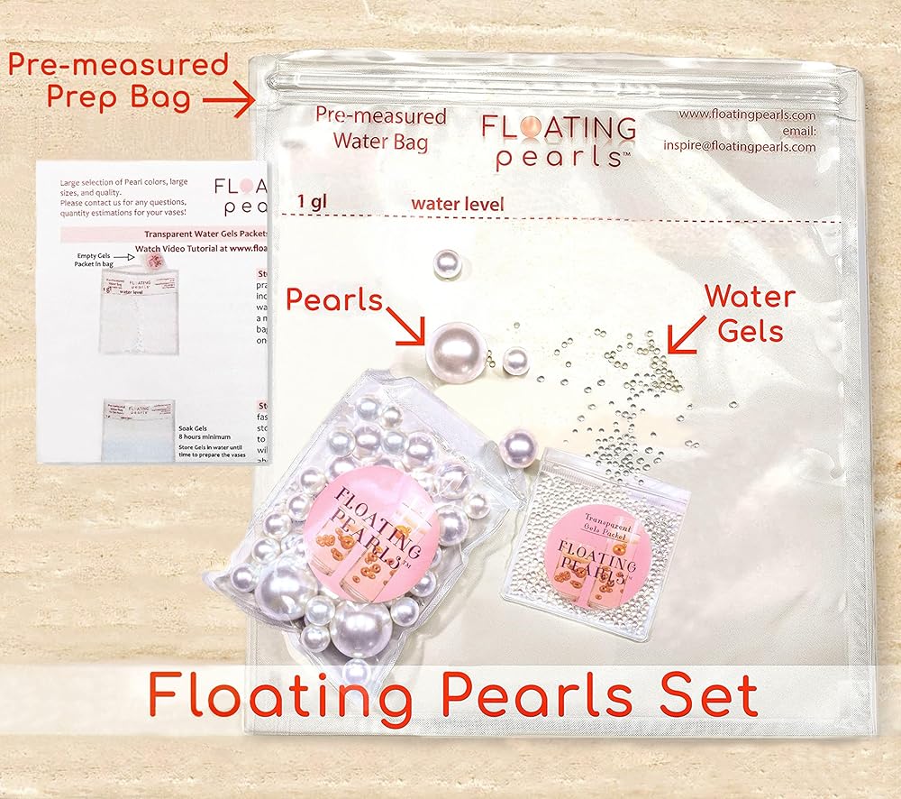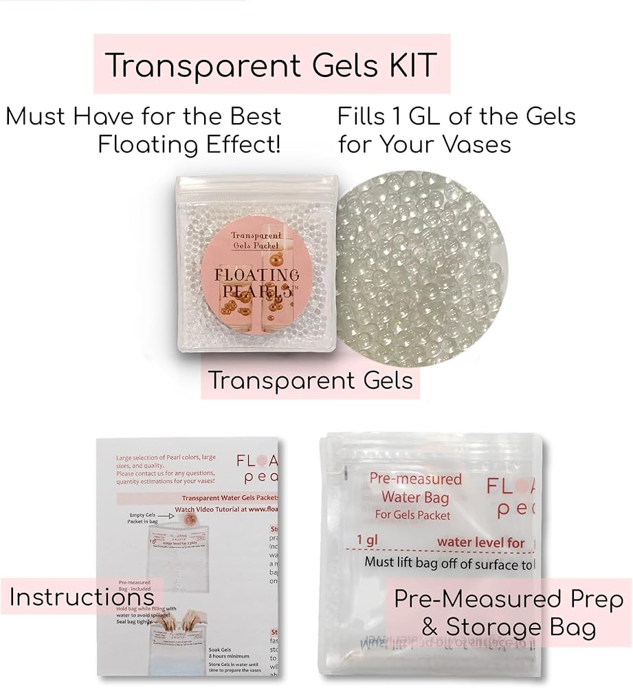 • يملأ 2 جالون من 50 لؤلؤة و50 جوهرة عائمة. اللآلئ: 6 (28 مم/1.10 بوصة)، 12 (20 مم/0.75 بوصة)، و32 (14 مم/0.5 بوصة). بالإضافة إلى عبوتين من مجموعة المواد الهلامية المائية الشفافة تتضمن حقيبة الإعداد/التخزين ذات المقاسات الحصرية. لذلك لا داعي للتخمين وأفضل النتائج! لتعويم اللؤلؤ والأحجار الكريمة. بعد 8 ساعات من الترطيب، ستملأ عبوتين من المواد الهلامية المائية الشفافة ما يصل إلى 2 جالون في المزهريات الخاصة بك