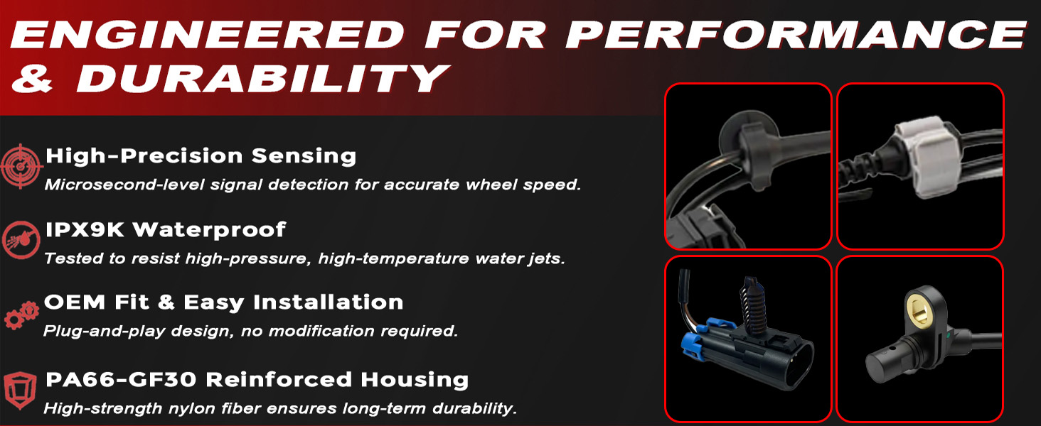 • 【جودة موثوقة - أداء آمن ومتسق】يتم اختبار كل مستشعر ABS بدقة للتأكد من الدقة والمتانة والثبات لضمان أداء فرامل آمن وقيادة يمكن الاعتماد عليها.