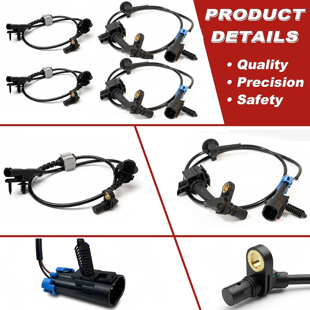 مستشعر سرعة عجلة ABS 4 قطع: أمامي وخلفي يسار ويمين متوافق مع كاديلاك 2007-2014 إسكاليد V8 6.0L/6.2L، شيفروليه 2007-2012 سيلفرادو 1500 V6 4.3L V8 4.8L/5.3L/6.0L/6.2L، انظر الملاءمة