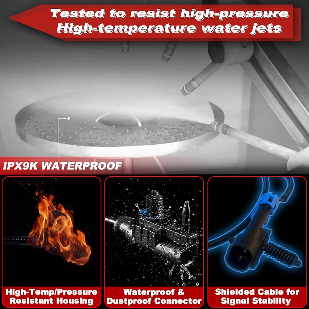 • 【حماية ممتازة ضد الماء - تم اختبار IPX9K】اجتاز مستشعر السرعة اختبارات نفث الماء ذات الضغط العالي ودرجة الحرارة العالية وفقًا لمعايير IPX9K. يمكن الاعتماد عليه في ظروف المطر أو الطين أو غسيل السيارات.