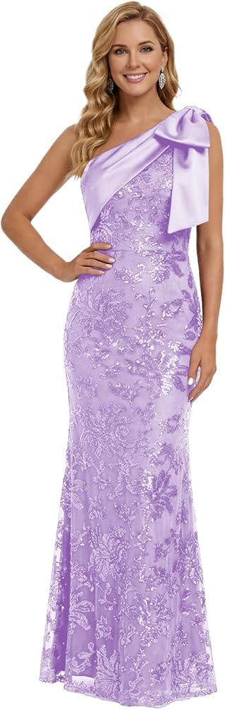 فساتين أم العروس بالترتر من SNOWROSE للنساء بكتف واحد طويل لحفلات الزفاف الرسمية مع فيونكة in Kuwait