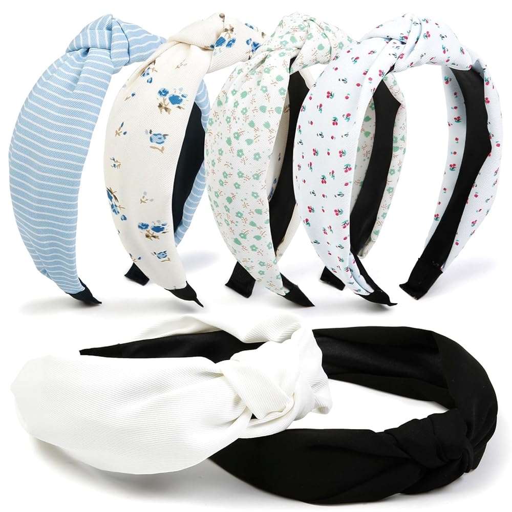 Versatile Color Combinations: Each knotted headbands set for women includes 6 carefully curated color combinations that are in line with the latest fashion trends. Including blue and white striped headband for women, white head band, gray hair band, floral hair bands,cherry hairband . All women's fashion headbands will match your everyday outfit perfectly.