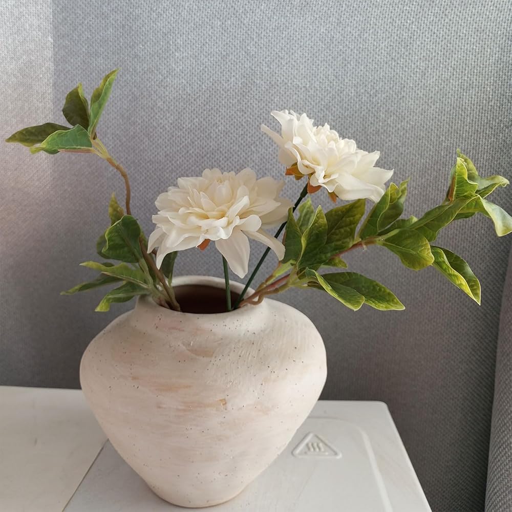 مزهرية سيراميك مصنوعة يدويًا: مصنوعة من السيراميك الفاخر، تتميز هذه المزهرية البيضاء ببنية مصنوعة يدويًا مع قاعدة معززة. تم تصميمه ليكون قويًا ومتينًا، فهو يقاوم الانقلاب والتشقق والتسرب. سهل التنظيف ومصمم ليدوم طويلاً، وهو مثالي للاستخدام اليومي كعرض زهور أو قطعة ديكور مستقلة.