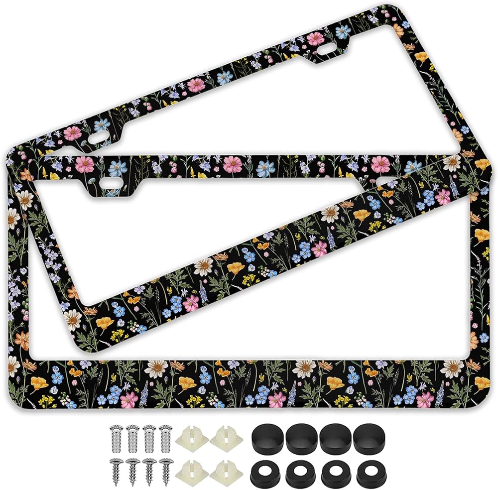 Whether you're upgrading your own vehicle or gifting these to a fellow floral enthusiast, these Wildflower Burst Wild Bloom Floral frames blend durability with irresistible charm. Their coated surface is easy to maintain—just wipe with a damp cloth to keep the vibrant printed design looking pristine. Note: Check local regulations, as the frame may cover parts of the plate, such as registration stickers. Order today and drive with vibrant, floral-inspired flair!