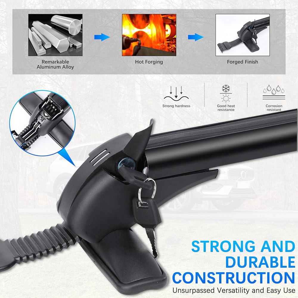 مادة متينة: مصنوعة من سبائك الألومنيوم عالية الجودة، وتتميز قضبان السقف ذات القضبان المتقاطعة بقدرة تحمل قوية مثالية للأنشطة الخارجية مثل التخييم وركوب الدراجات والتزلج.