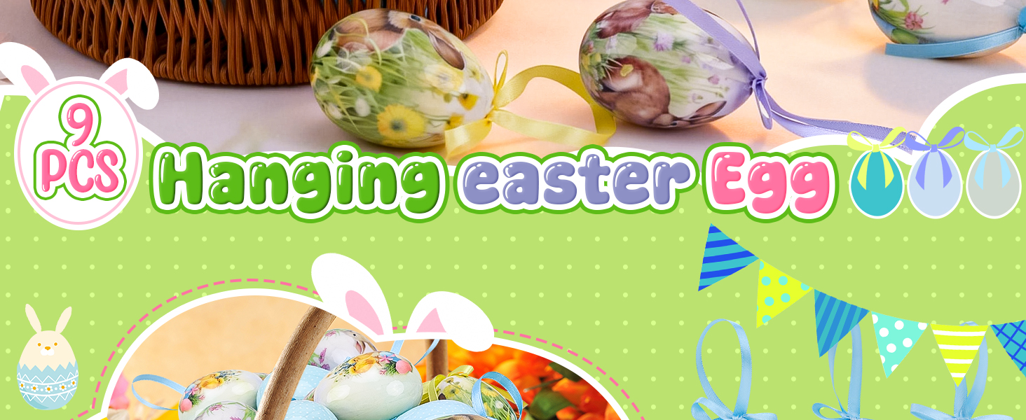 [العبوة] سوف تحصل على 9 قطع من زخارف البيض المعلقة، وهي 3 بيضات معلقة بألوان زاهية مختلفة وهي رائعة بما يكفي لتزيين منزلك وحفلة عيد الفصح، مثل زخرفة شجرة عيد الفصح المعلقة وحشو سلة عيد الفصح وديكور صينية ذات طبقات.