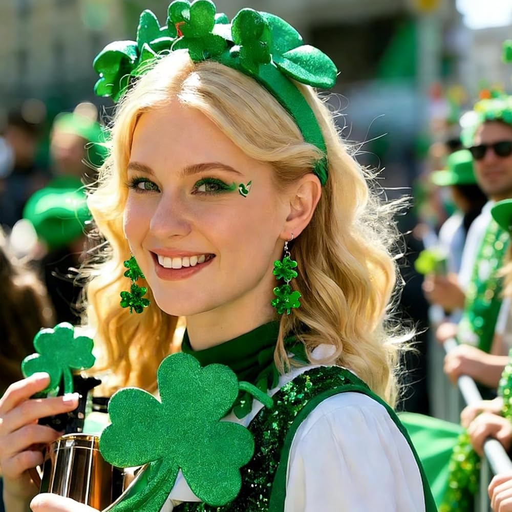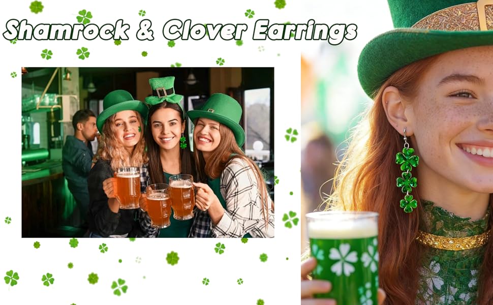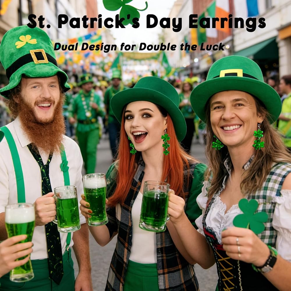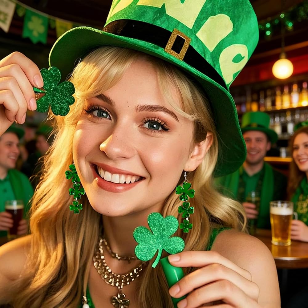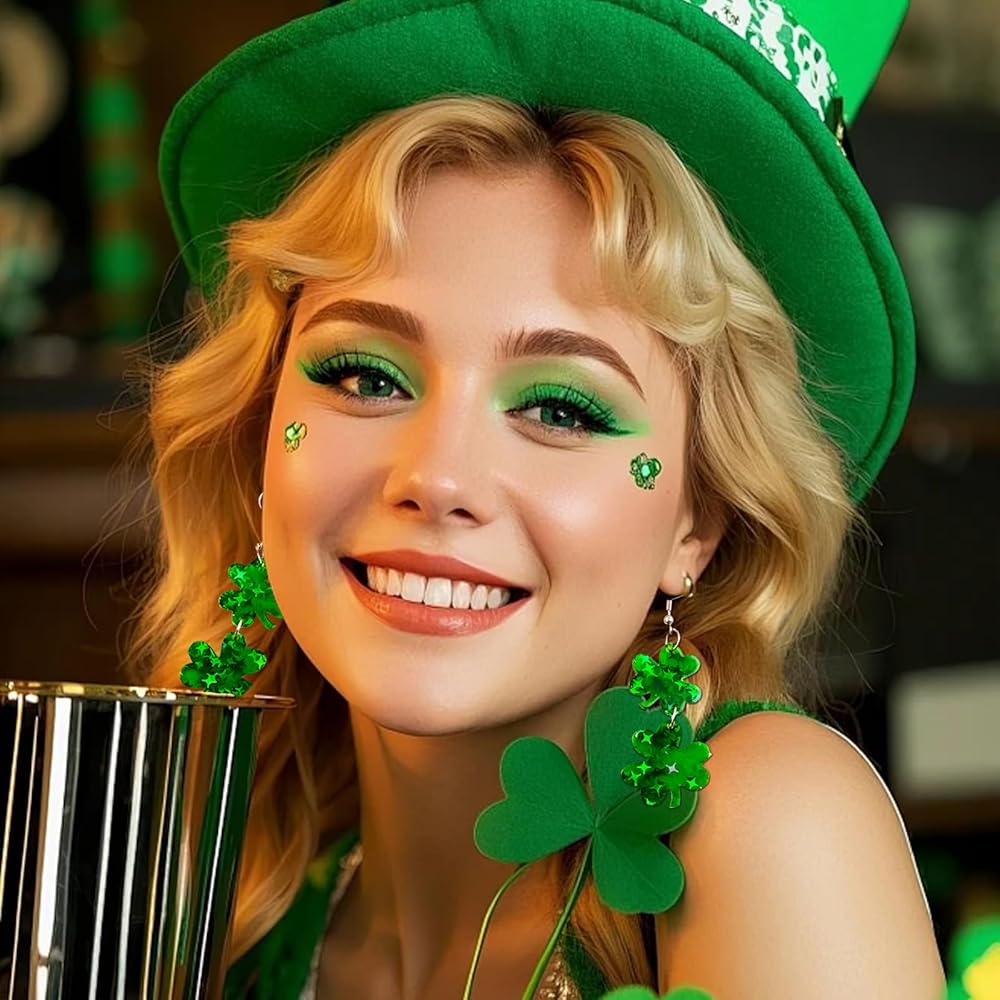 أقراط عيد القديس باتريك للنساء: تم تصميم هذه الأقراط من نبات النفل والبرسيم لإكمال أي زي للنساء في عيد القديس باتريك. أضف لمسة من السحر الأيرلندي والحظ إلى ملابس عيد القديس باتي الخاصة بك مع هذه الأقراط