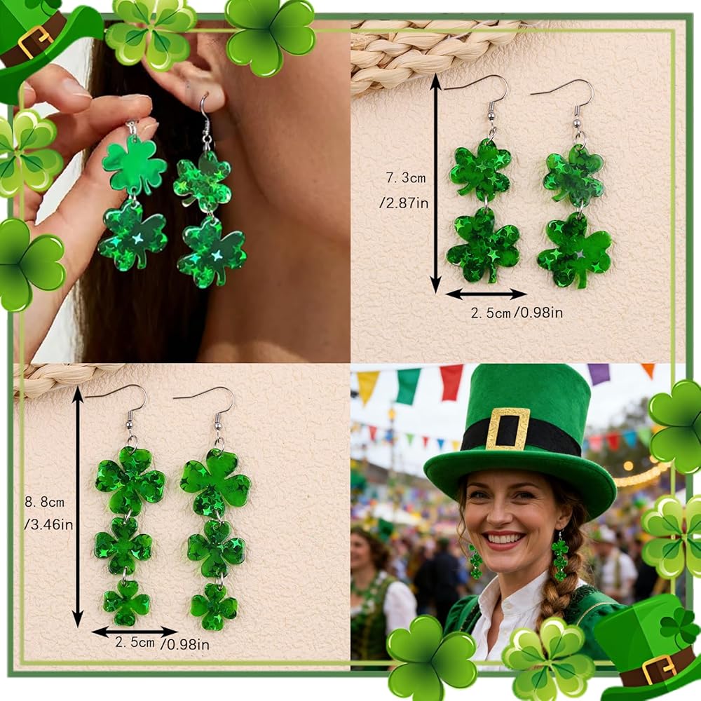 المواد: مصنوعة من الأكريليك وسبيكة عالية الجودة، هذه الأقراط خفيفة الوزن، هذه الأقراط يوم القديس باتريك مريحة للارتداء طوال اليوم. يضيف تصميمها المتدلي الرقيق لمسة احتفالية دون أن يثقل كاهلك