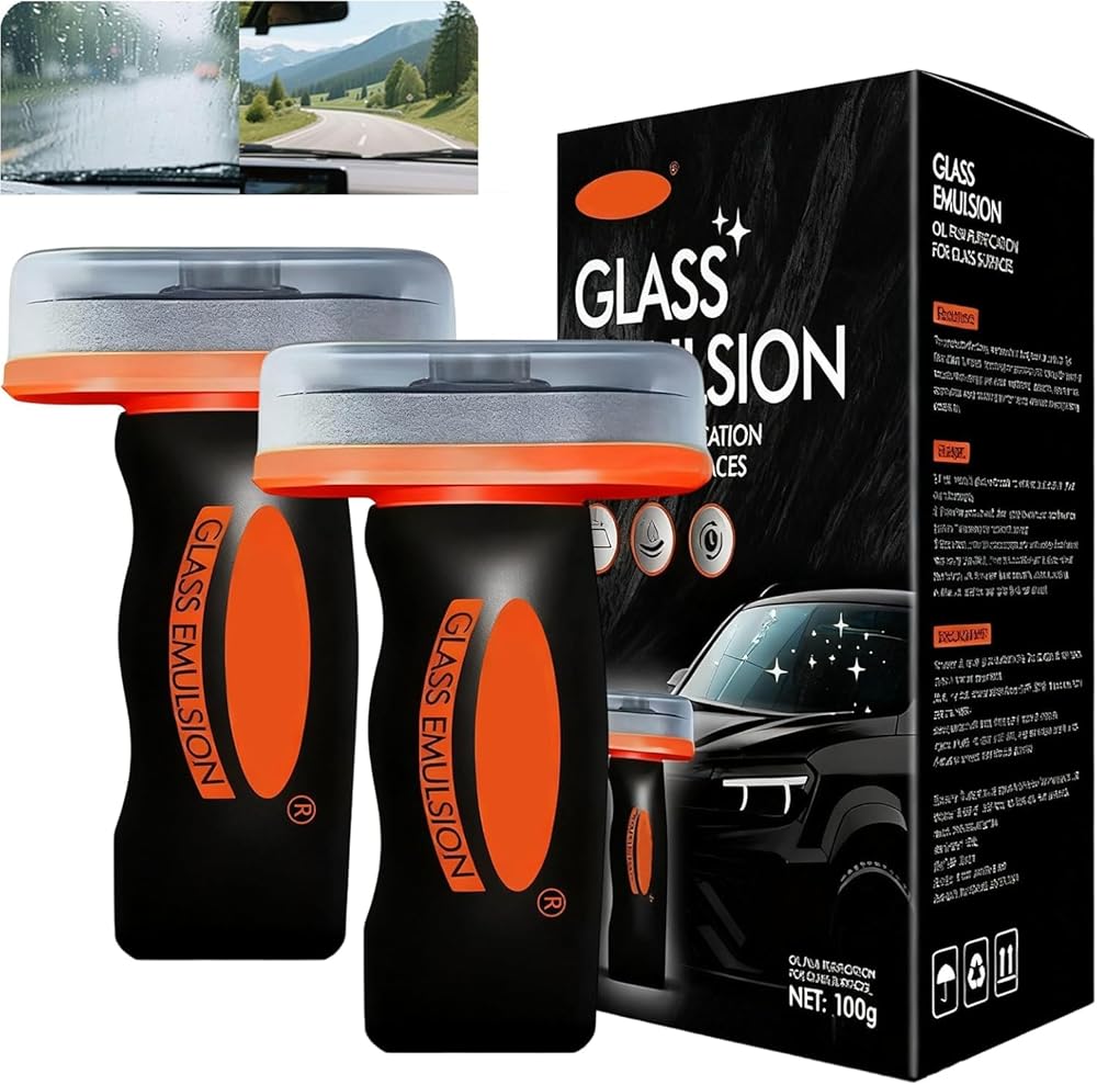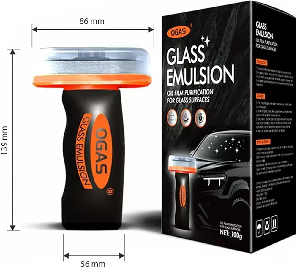 Glass Oil Film Remover for Car,Oil Film Remover for Car Windshields and Windows, Removes Oil Film & Smudges, Improve Windshield Clarity for Safe Driving Glass Oil Film Remover for Car,Roll-On Glass Compound with Cleaning Board,Removes Oil Film & Smudges,Universal Anti-Rain Fog BrushOil Film Remover for Car Windshields and Windows(100g-2PCS)