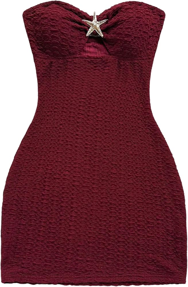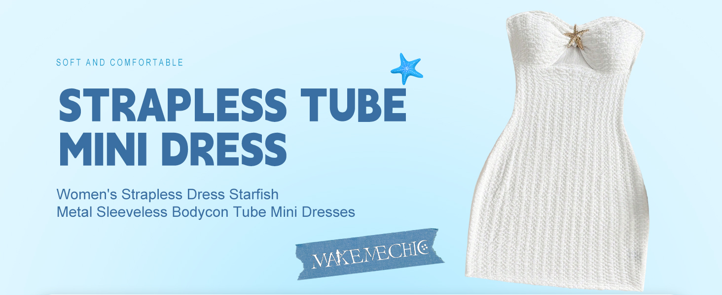 فستان MakeMeChic نسائي بدون حمالات على شكل نجم البحر معدني بدون أكمام، فساتين قصيرة على شكل أنبوب in Kuwait