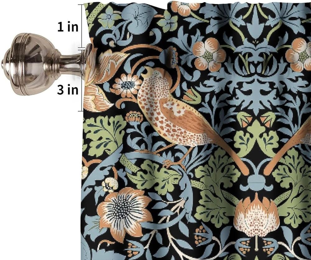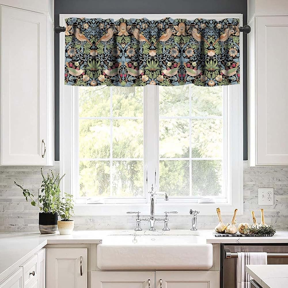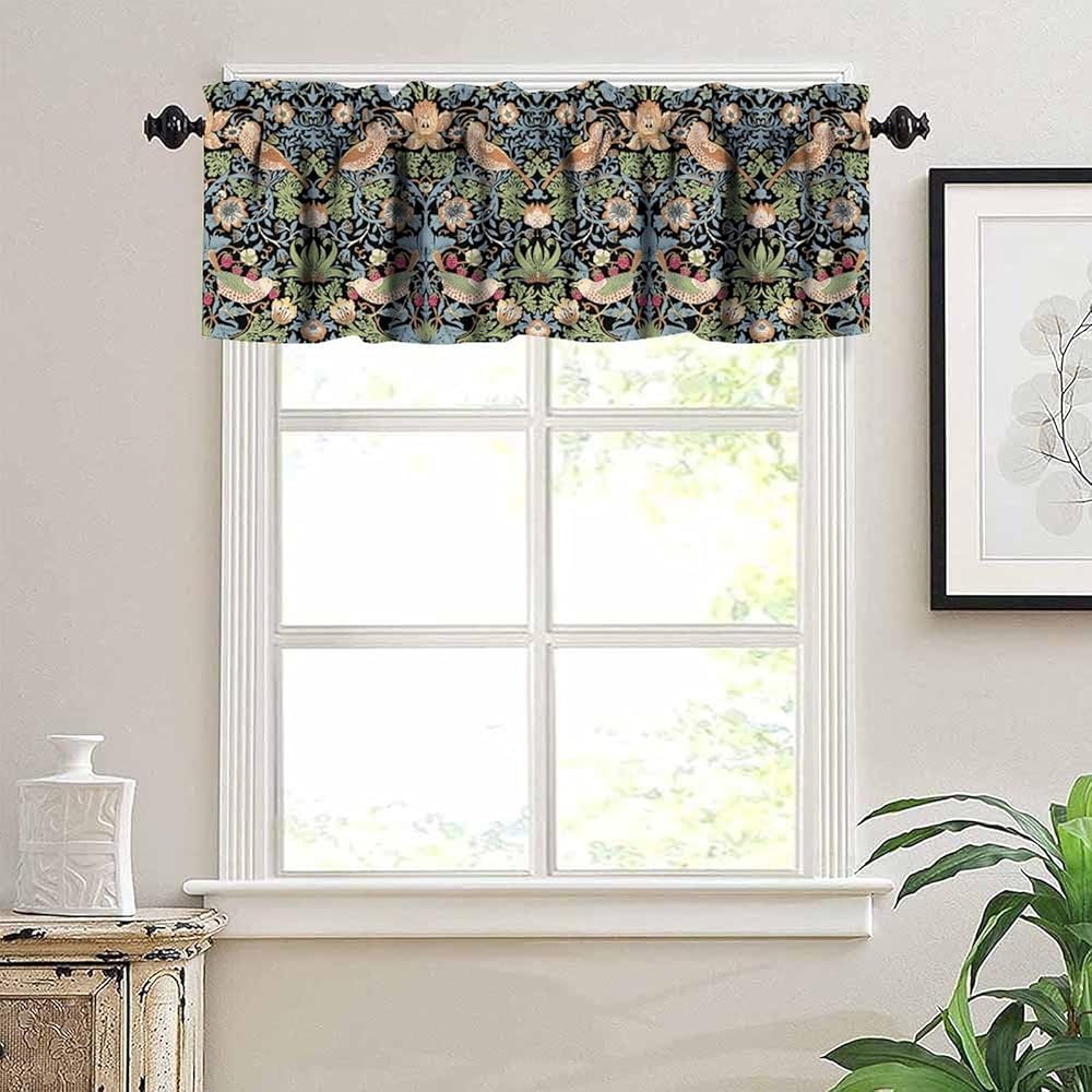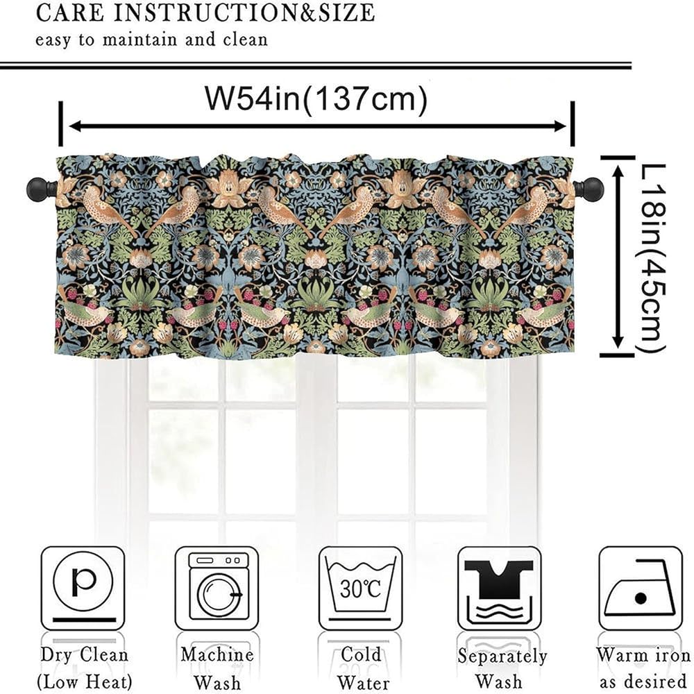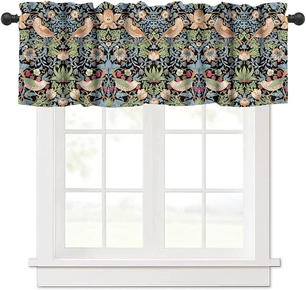 ستارة ويليام موريس العتيقة، ستارة نافذة مجردة على شكل طائر زهرة ريترو لغرفة النوم وغرفة المعيشة والمطبخ، مجموعة لوحات فنية ريفية باللون الأخضر والأسود مقاس 54 × 18 بوصة، قطعة واحدة