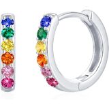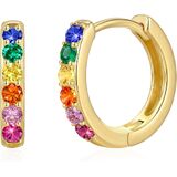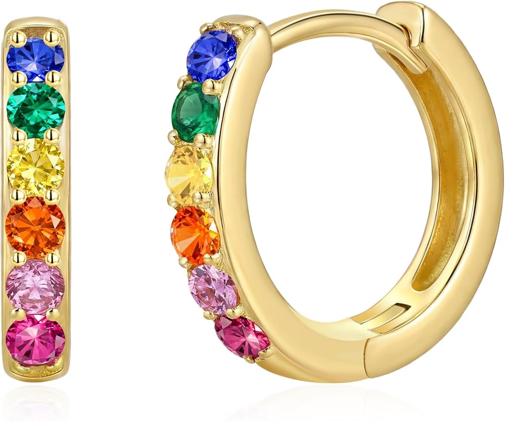 925 Sterling Silver Huggie Earrings for Women 14K Gold Plated Silver Hoop Earrings for Women Hypoallergenic Small Colourful Rainbow Cubic Zirconia Huggie Earring (12/14/16MM)
