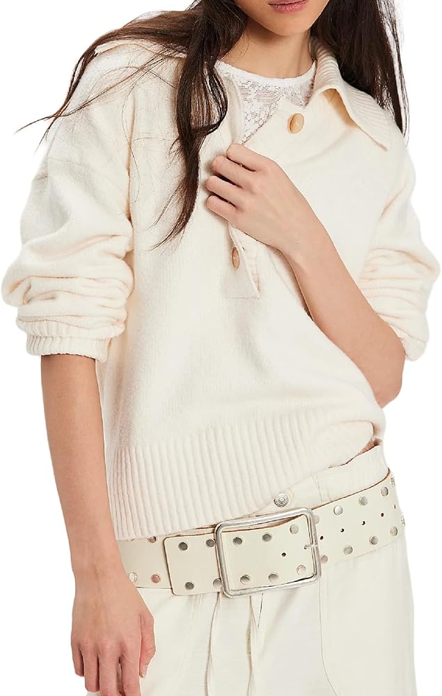 Style: Women's button up polo neck sweater, fall winter collared sweaters, y2k long sleeve knitted polo shirt, can easily match with fashion jeans, denim shorts, bloomers, mini skirt, wear it unbutton as a deep v neck pullover to layer with sexy lace shirt.