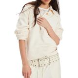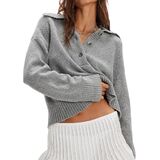 Women Cropped Polo Sweater Long Sleeve Oversized Collared Pullover Casual Lapel V Neck Knitted Jumper Tops