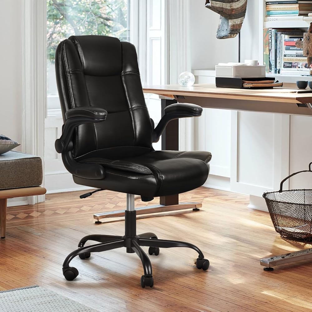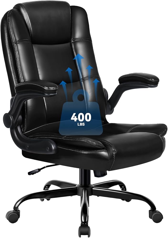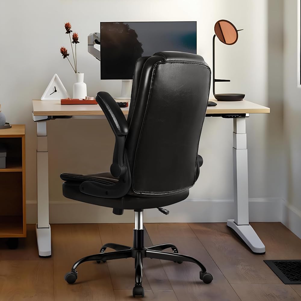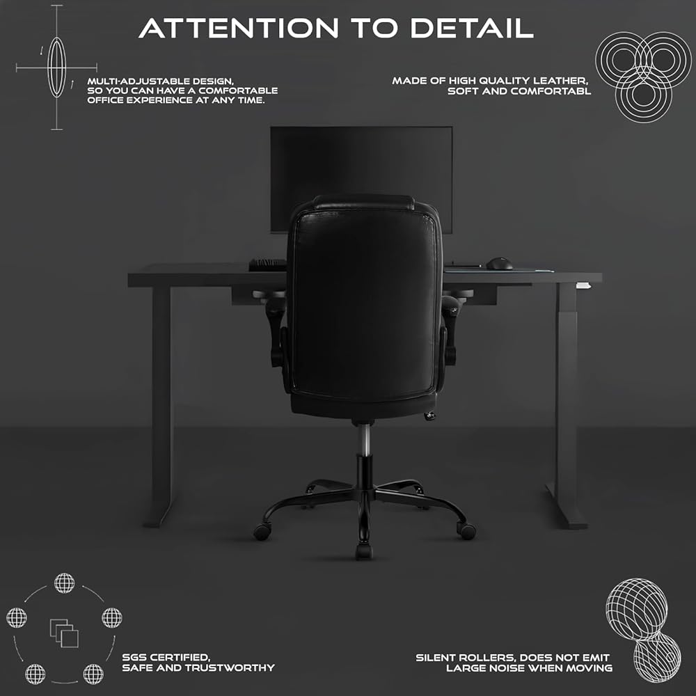 كرسي مكتب تنفيذي من VITESSE مع مساند للذراعين قابلة للطي، كرسي مكتب مريح من الجلد كبير وطويل القامة، كرسي مكتب كمبيوتر منزلي عالي الظهر، كرسي كمبيوتر ثقيل ومتين (أسود)