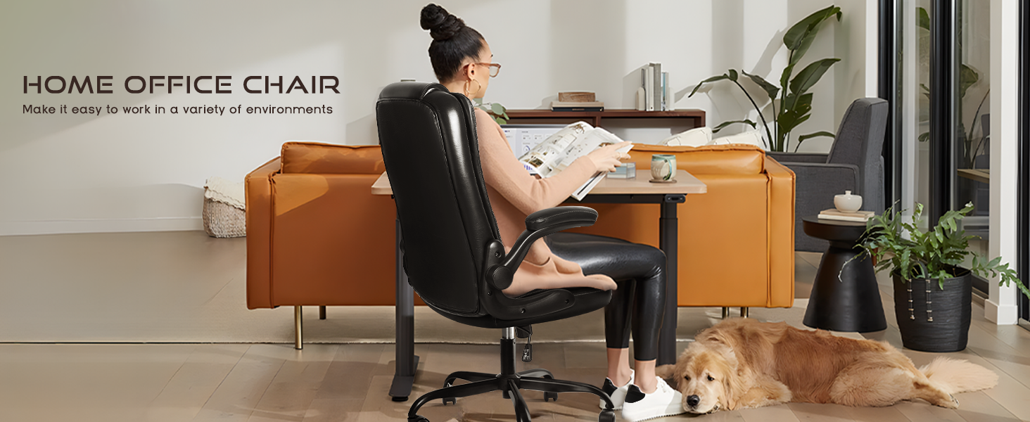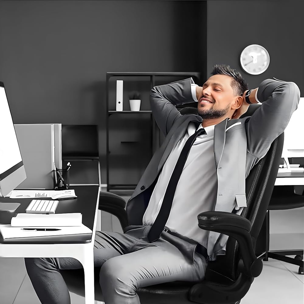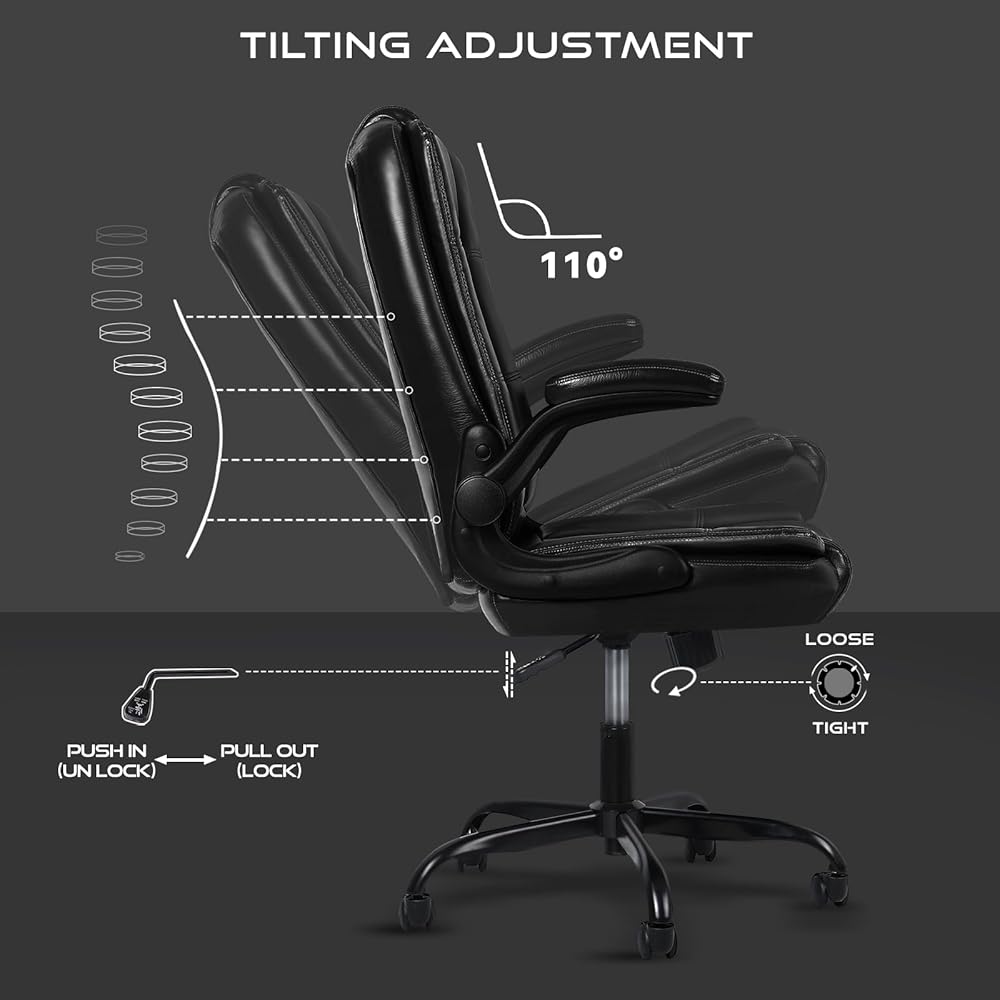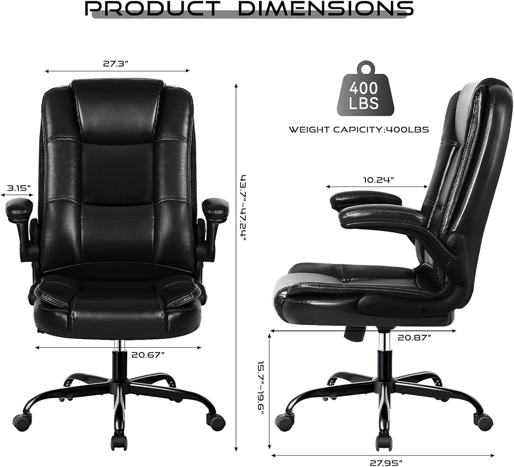 كرسي مكتب تنفيذي من VITESSE مع مساند للذراعين قابلة للطي، كرسي مكتب مريح من الجلد كبير وطويل القامة، كرسي مكتب كمبيوتر منزلي عالي الظهر، كرسي كمبيوتر ثقيل ومتين (أسود)