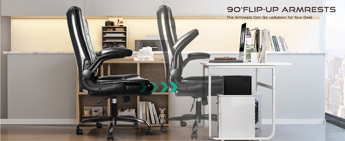 【مساند أذرع قابلة للطي】- توفر مساند الذراعين القابلة للطي مرونة إضافية، مما يسمح لك بالتحرك بسهولة داخل وخارج الكرسي أو تعديل وضع الجلوس حسب الحاجة. يمكن وضع هذا الكرسي الثقيل والمتين في منطقة الجلوس، مما يوفر لك مساحة كبيرة في بيئة مكتبك.