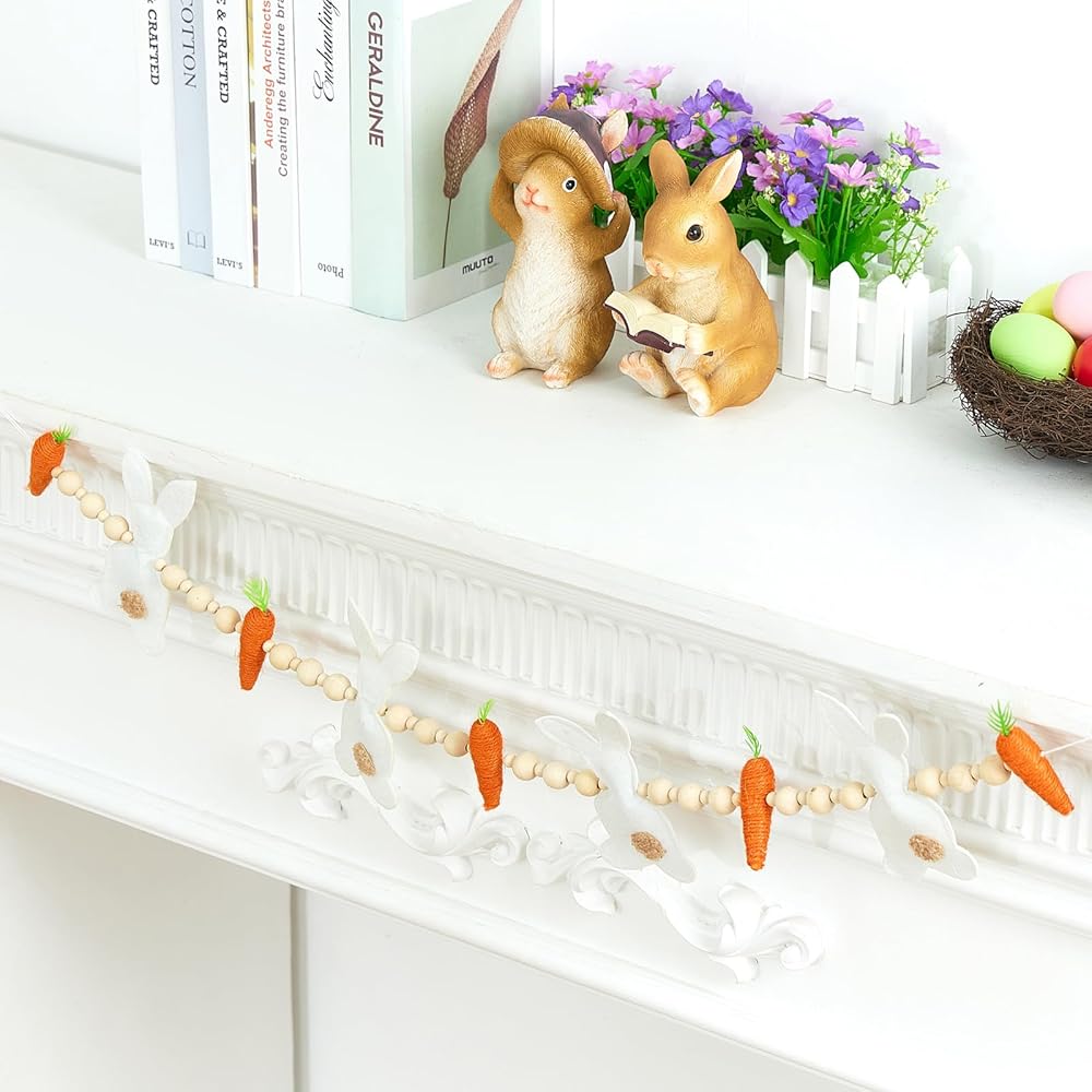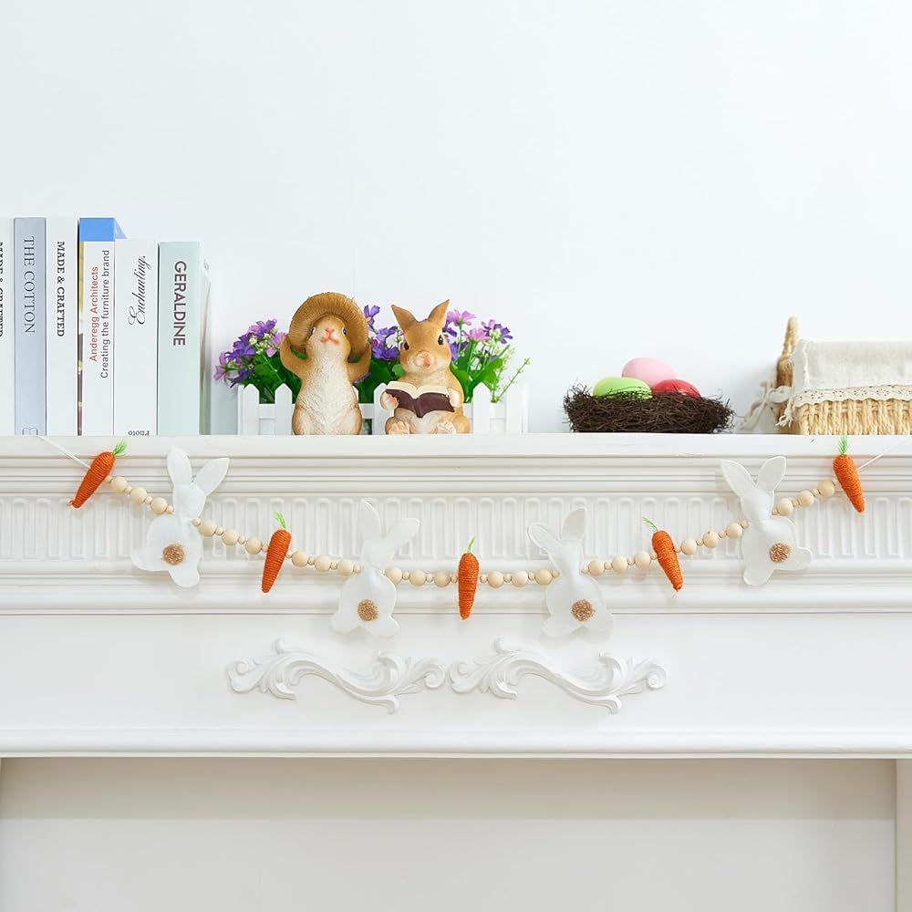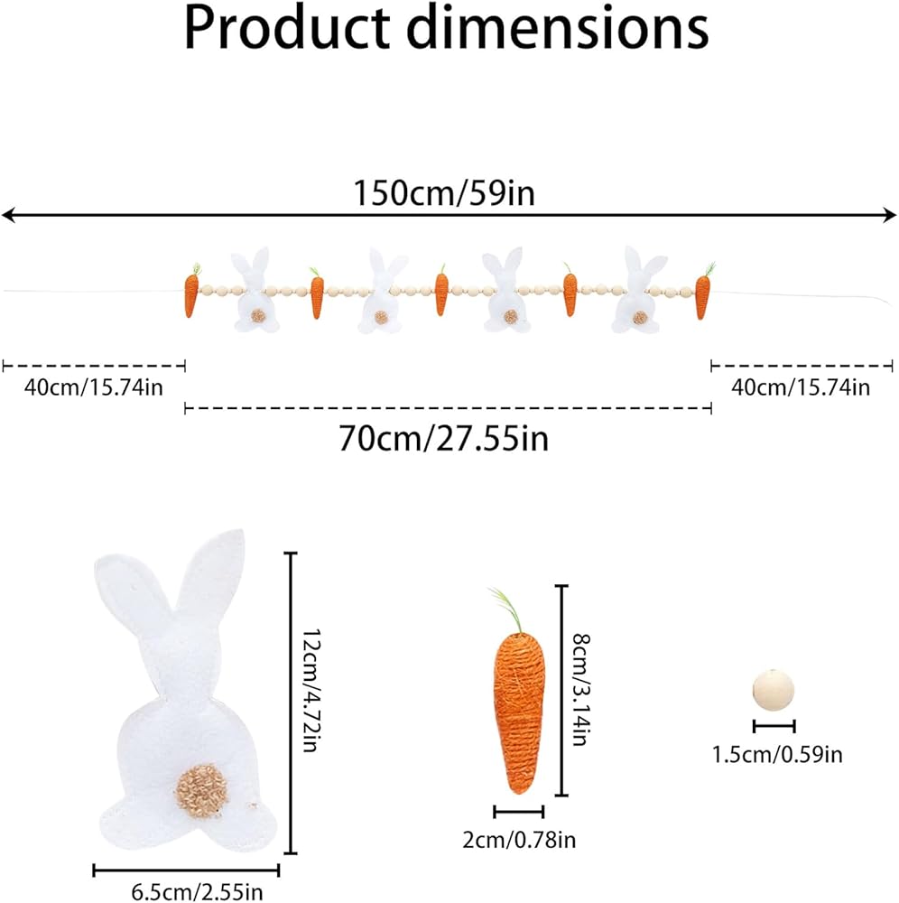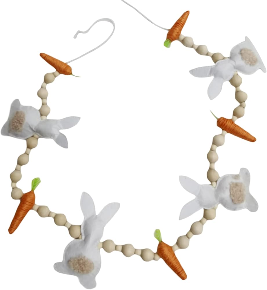 • Feature: Each garland includes: 4pcs 3D rabbits, 5pcs whimsical carrots, gradient wooden beads (56 total), Can be adjusted to desired spacing