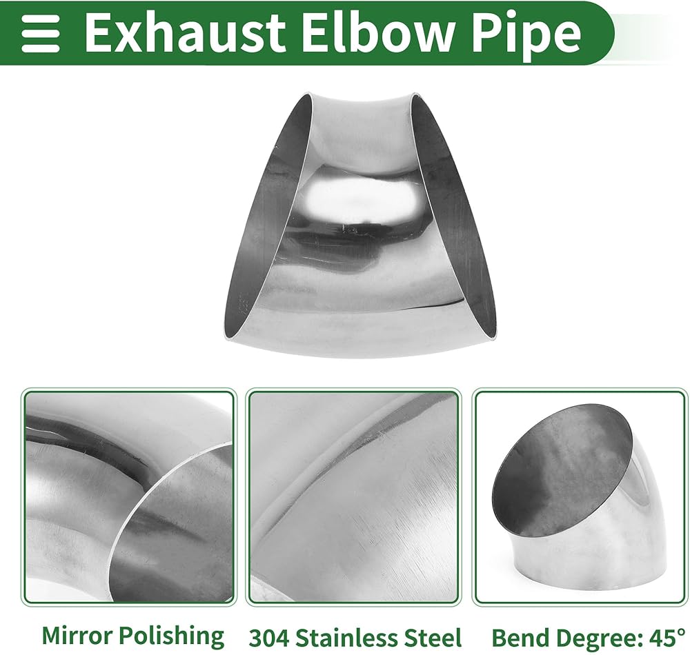 • Installation Guide:Easy to install: 1. Clean the Mandrel Bend Elbow; 2. Fit the connecting pipe and exhaust pipe together; 3. You may require tools like a wrench for removal and installation if needed.