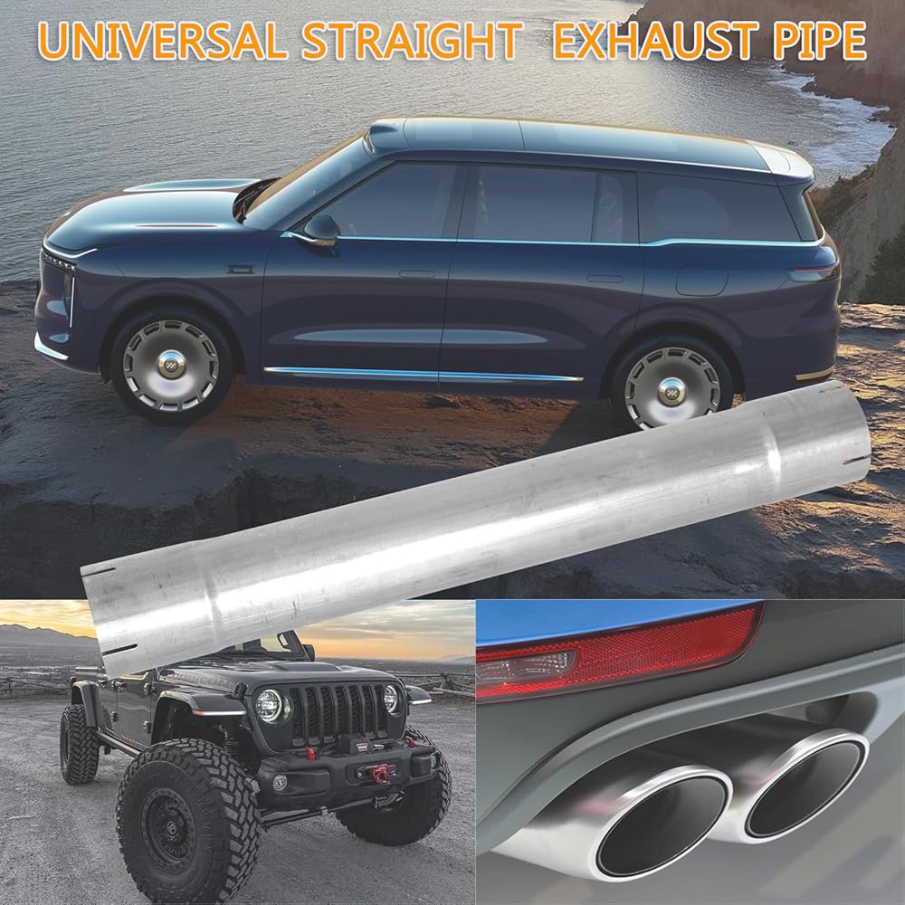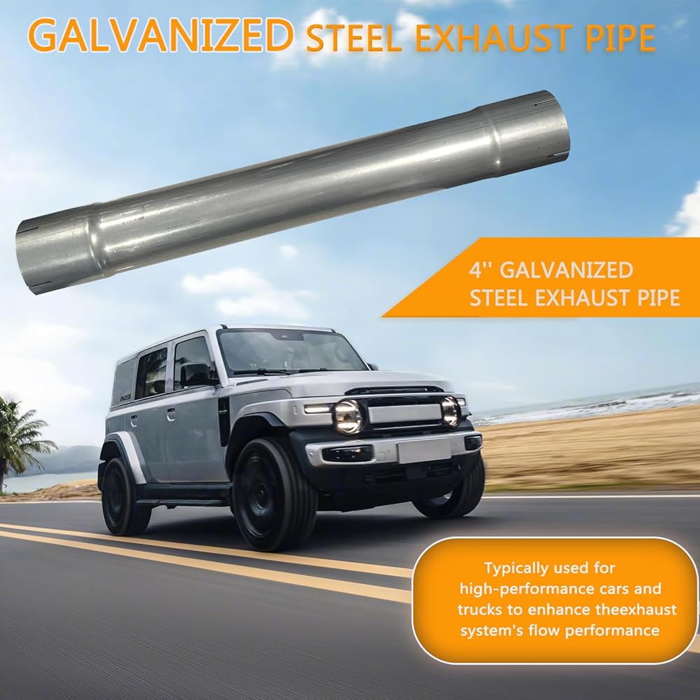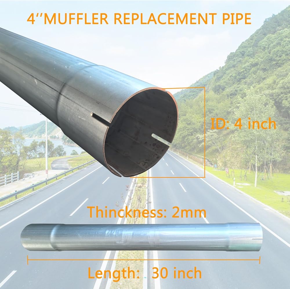 - 4" stainless exhaust pipe Round Straight Steel Pipe universal fitment for vehicle professional installer is highly recommend
