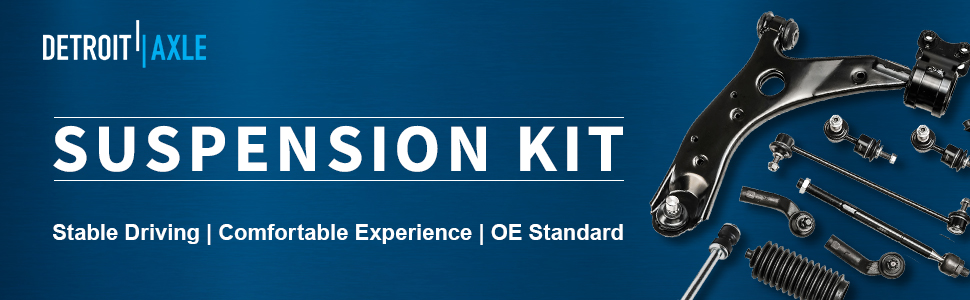 تشتمل مجموعة أدوات تعليق الصدمات على ما يلي: (2) محامل محور العجلة الأمامية + (2) دعامات أمامية مع زنبرك ملفوف + (2) ممتصات الصدمات الخلفية + (2) أذرع تحكم سفلية + (2) وصلات قضيب التأرجح + (4) قضبان ربط + (2) أحذية طويلة