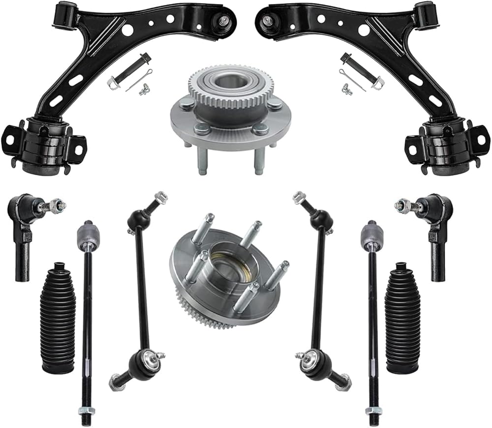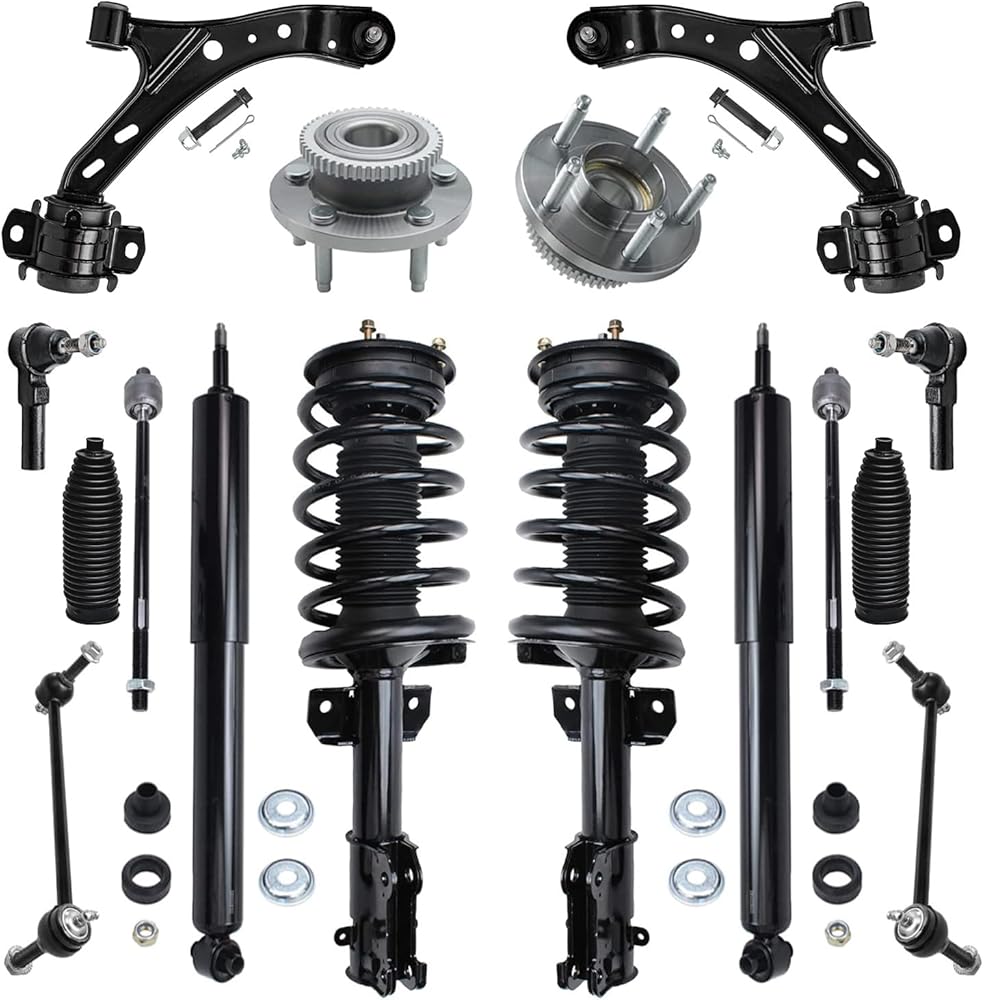 محور ديترويت - الدعامات الأمامية ممتص الصدمات الخلفي محور العجلة يحمل أذرع التحكم السفلية وقضبان التعادل الخارجية الداخلية مع استبدال وصلات قضيب التأرجح لـ 2005-2010 Ford Mustang - مجموعة 16 قطعة