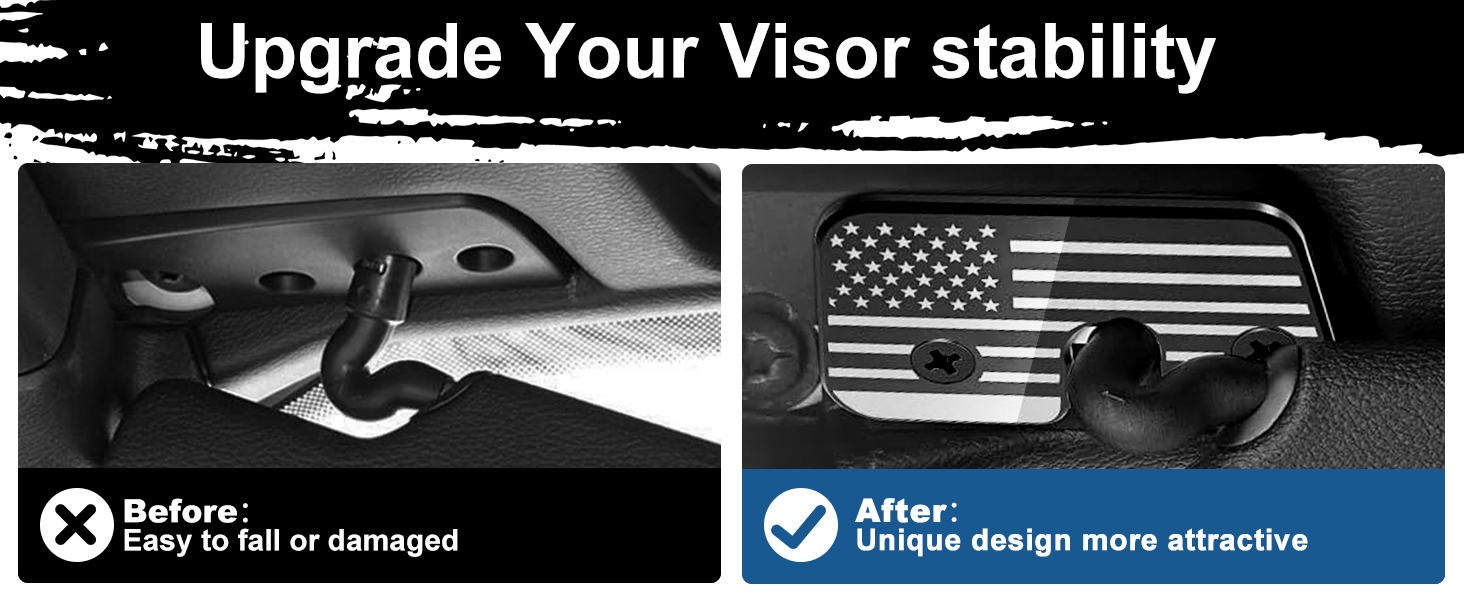 تصميم تركيب مخفي: مجموعة إصلاح حاجب الشمس من رانجلر تتميز بمسامير رأس غاطسة، يتم تركيب طقم إصلاح حاجب الشمس من رانجلر بسلاسة دون أي أدوات بارزة. إنه يوفر حلاً مطورًا للأقنعة البالية، مع إضافة لمسة عصرية وأنيقة إلى الجزء الداخلي لسيارتك. مثالي لأي شخص يبحث عن ملحقات حاجب السيارة المتينة والجذابة