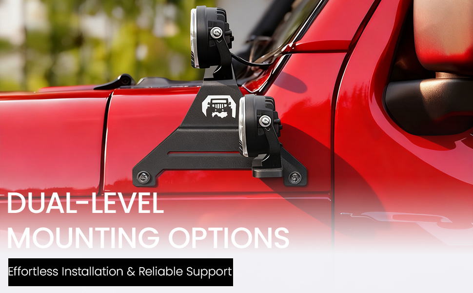 【خيارات تركيب مزدوجة المستوى】 تتميز بإعداد مبتكر من طبقتين - حامل علوي متوافق مع مختلف الأضواء الكاشفة أو الأضواء المكعبة، وقوس سفلي قابل للفصل لمزيد من المرونة. قم بتعديلها أو إزالتها حسب الحاجة لتتناسب مع نمط الإضاءة المفضل لديك.