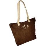 Embroidered Personalized Tote Zipper Closure Corduroy Bag for Women Girls with Inner Pocket