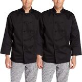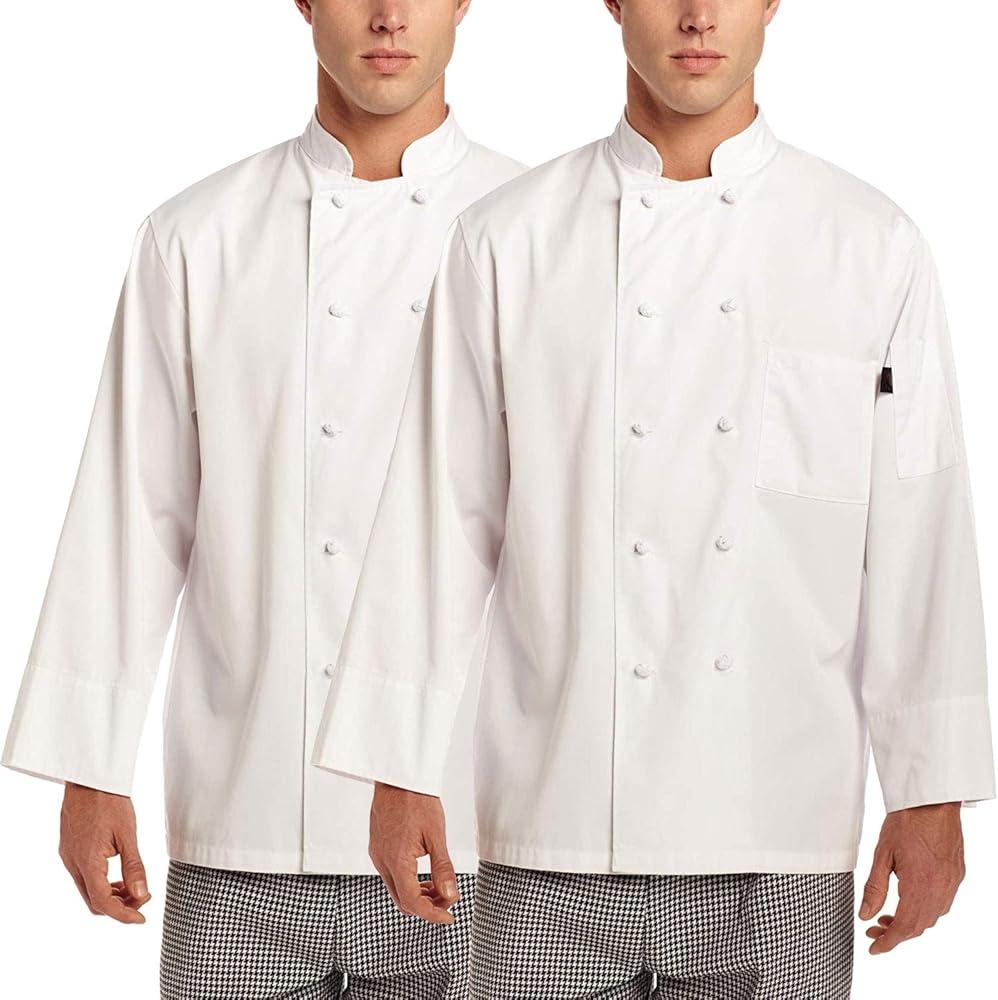 Pack of 2 - Chef Jacket with double breasted front with cloth knot buttons, Left chest pocket, Thermometer pocket on left sleeve. Durable construction, 7oz Twill, Poly Cotton.