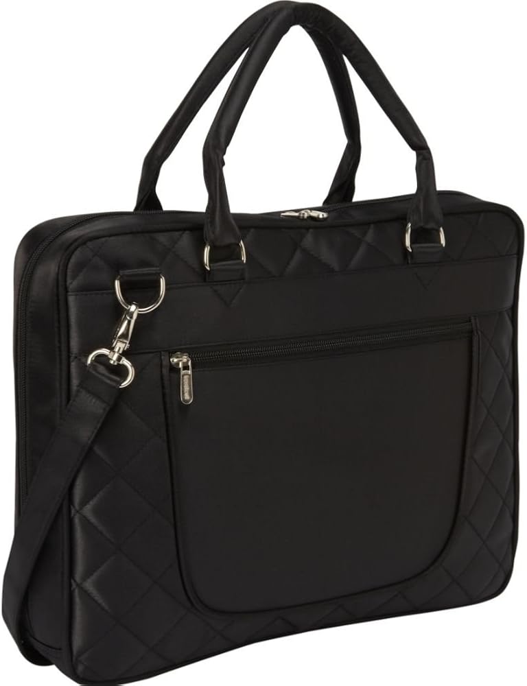 Quilted satin brief is perfect for working professionals. Features a small zip pocket on the front for quick access to incidentals.