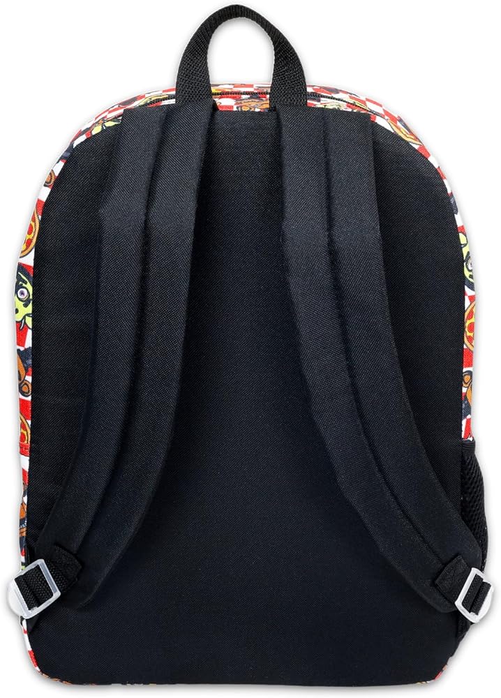This Five Nights at Freddy's backpack set includes one FNAF school bag with colorful artwork of Freddy, Foxy, Chica, and Bonnie with adjustable shoulder straps and top loop for hanging.